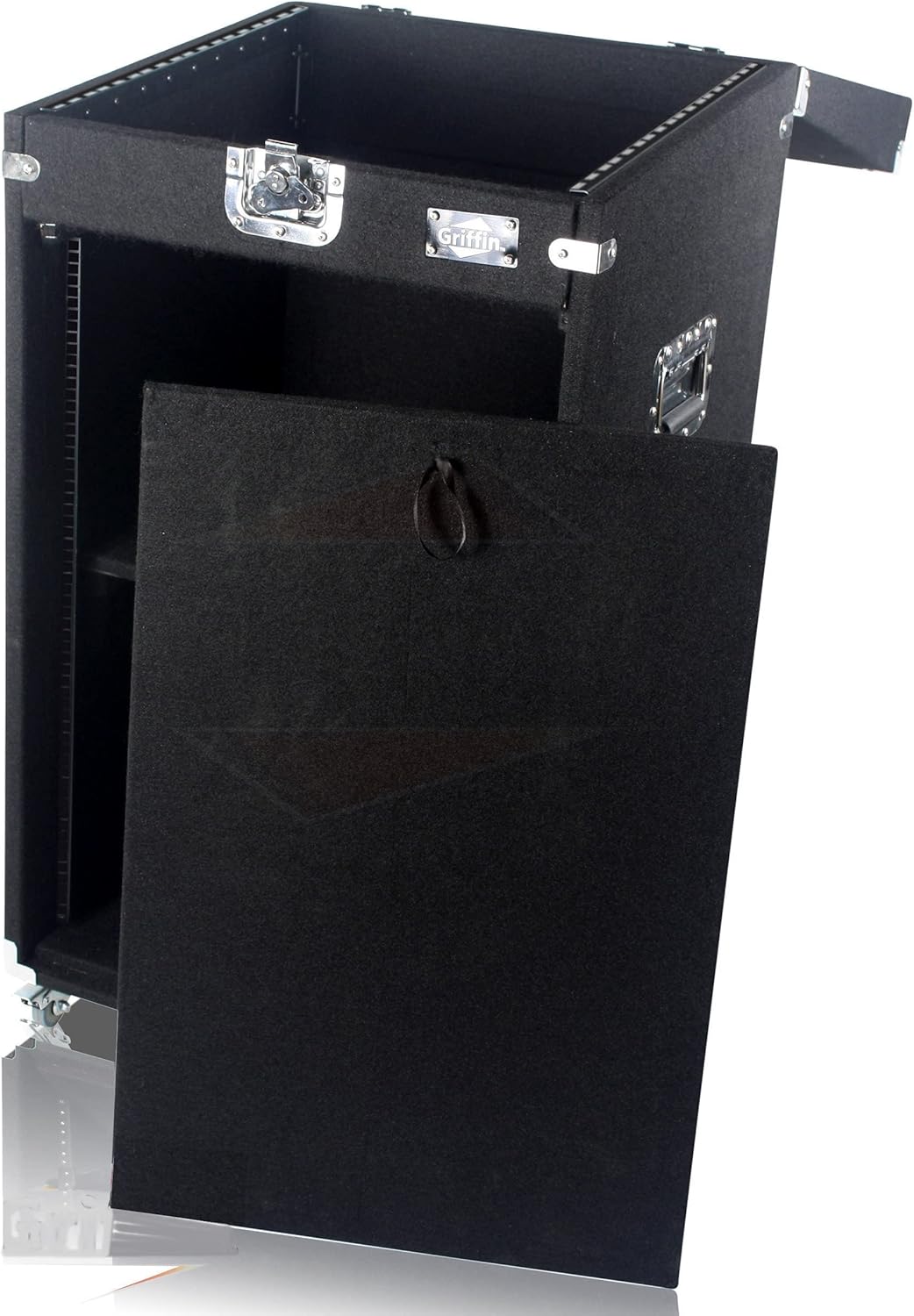 Griffin Rackmount Studio Mixer Flight Road Case (Ultimate-PROAudio) – 25U Mount Space Amp Cabinet Travel Trunk For Music Gear Recording Equipment – Portable DJ Sound Booth Carpet Rack Stand Cart