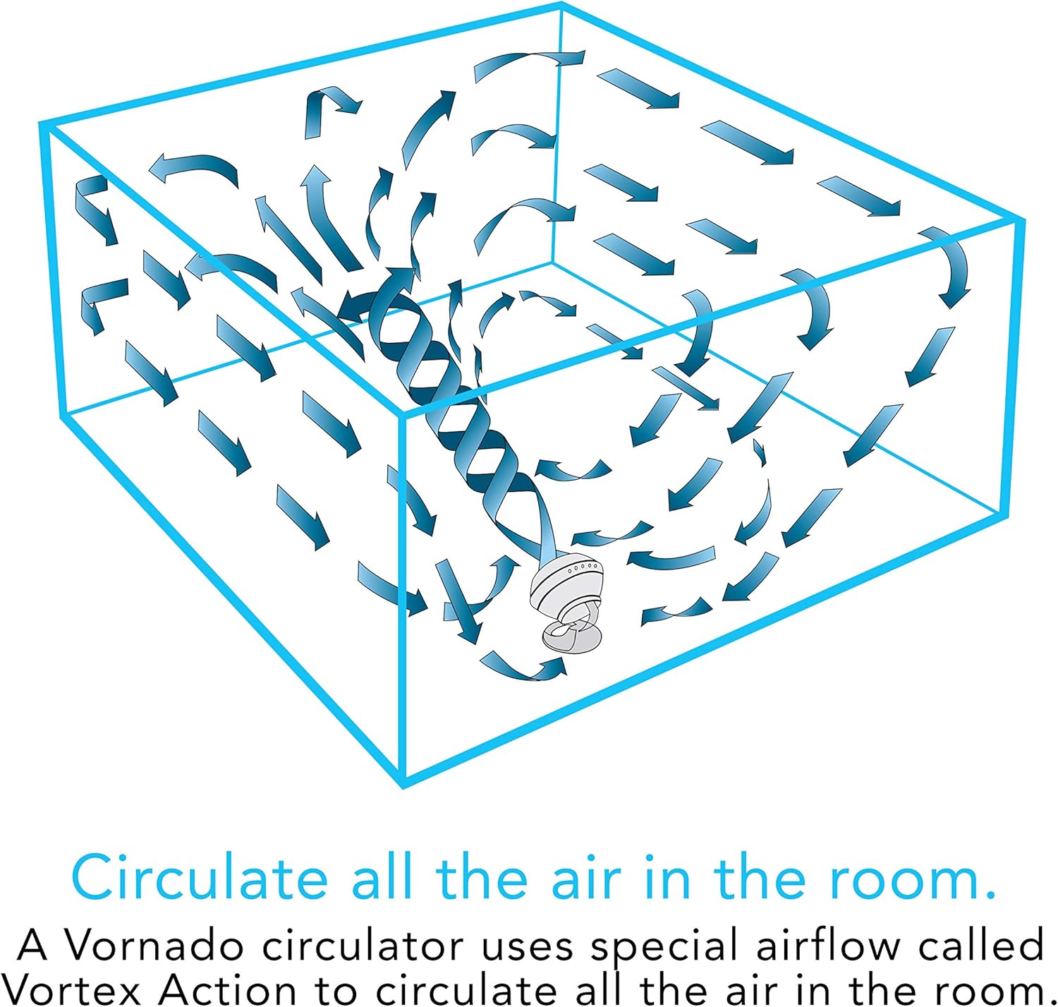 - POWERFUL VORTEX ACTION β Utilizes Vornado's signature Vortex air circulation to more effectively move air throughout the room. No matter where you are in the room, you'll be able to experience the power of a Vornado fan.