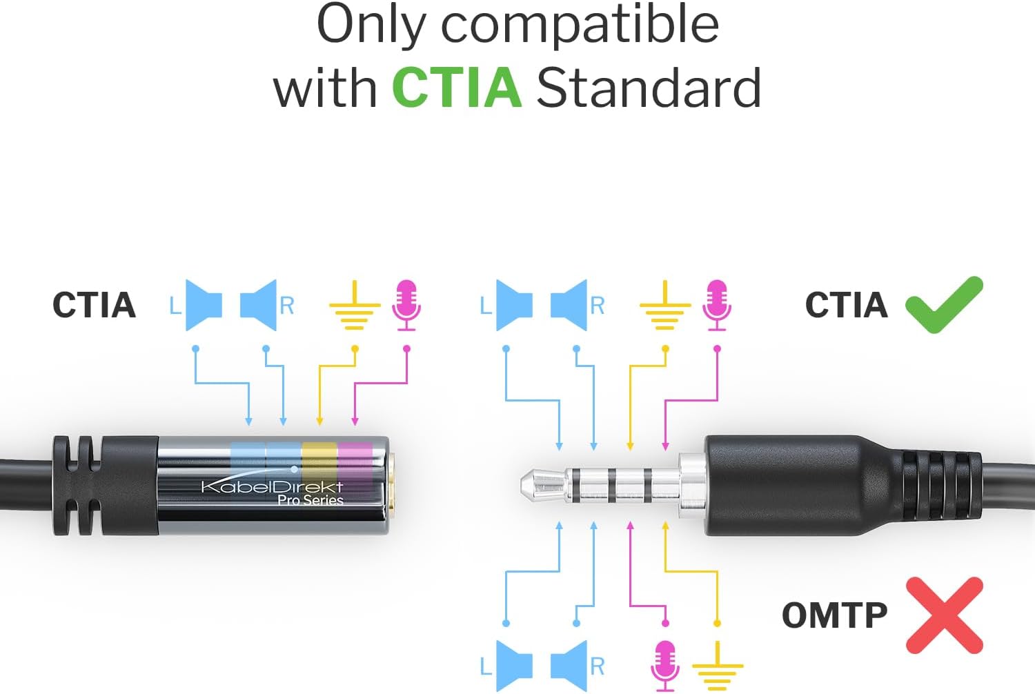 - Our CTIA-standard headset extension cable with 3.5mm/aux connectors (male to female) transmits audio signals in brilliant quality to headsets or headphones with a microphone – and supports functions like next, pause, play, and mic