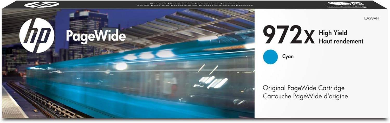 HP 972X PageWide High Yield Cyan Ink Cartridge for HP Printers| Works with Printer Series: PageWide Pro 452, 477, 552dw, 577 | L0R98AN