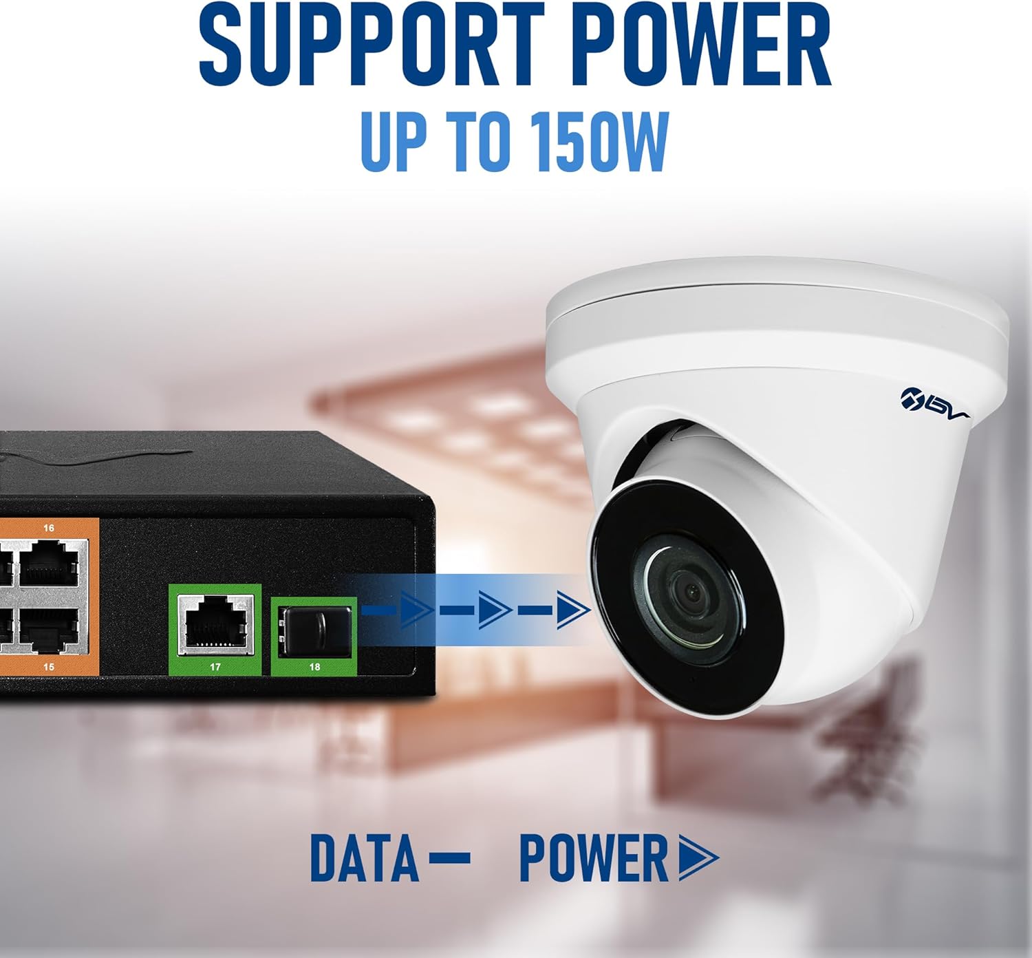 - 16 High Power PoE+ Ports: Each port delivers up to 30W of power with a total power budget of 120W, perfect for IP cameras, VoIP phones, and wireless access points.