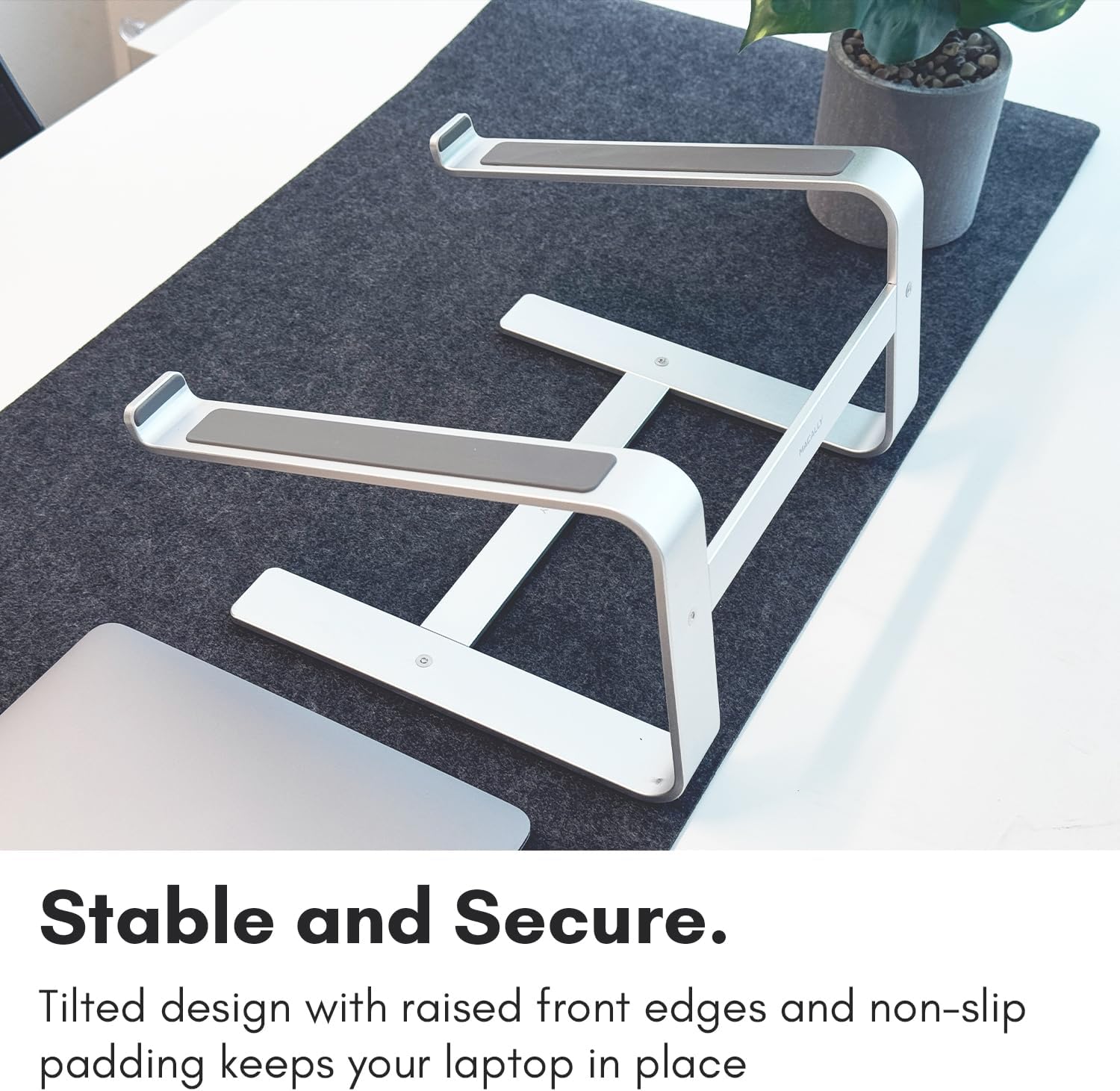 - SECURE AND STURDY: Raised front edges on our macbook stand hold your laptop in place while in a tilted position and rubberized non-slip pads provide support and prevent unwanted scratches.
