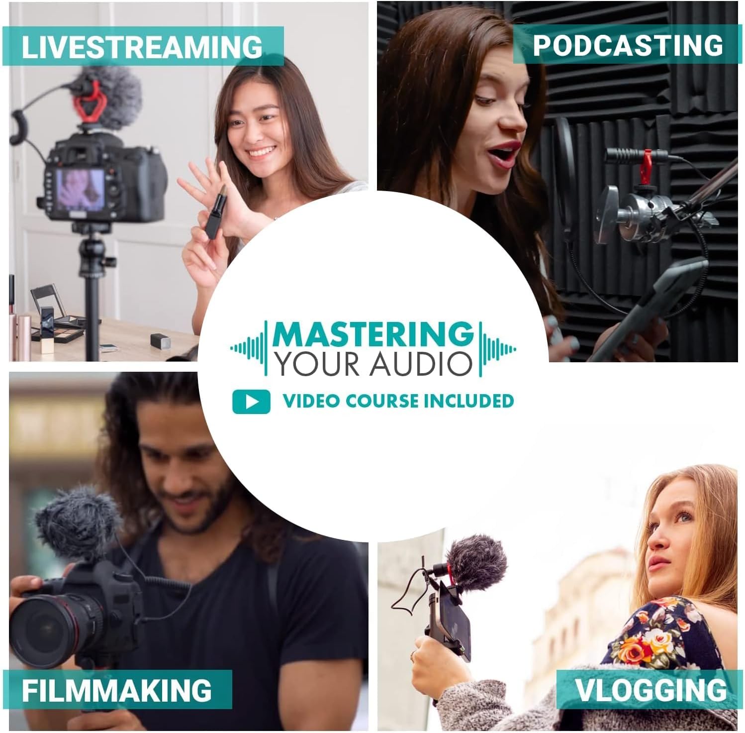 - UNIVERSAL COMPATIBILITY: External microphone for iPhone, Androids, Cameras, Camcorders, Audio Recorders, Tablets, and Laptops. Use as iPhone microphone, DSLR microphone or camera mic.