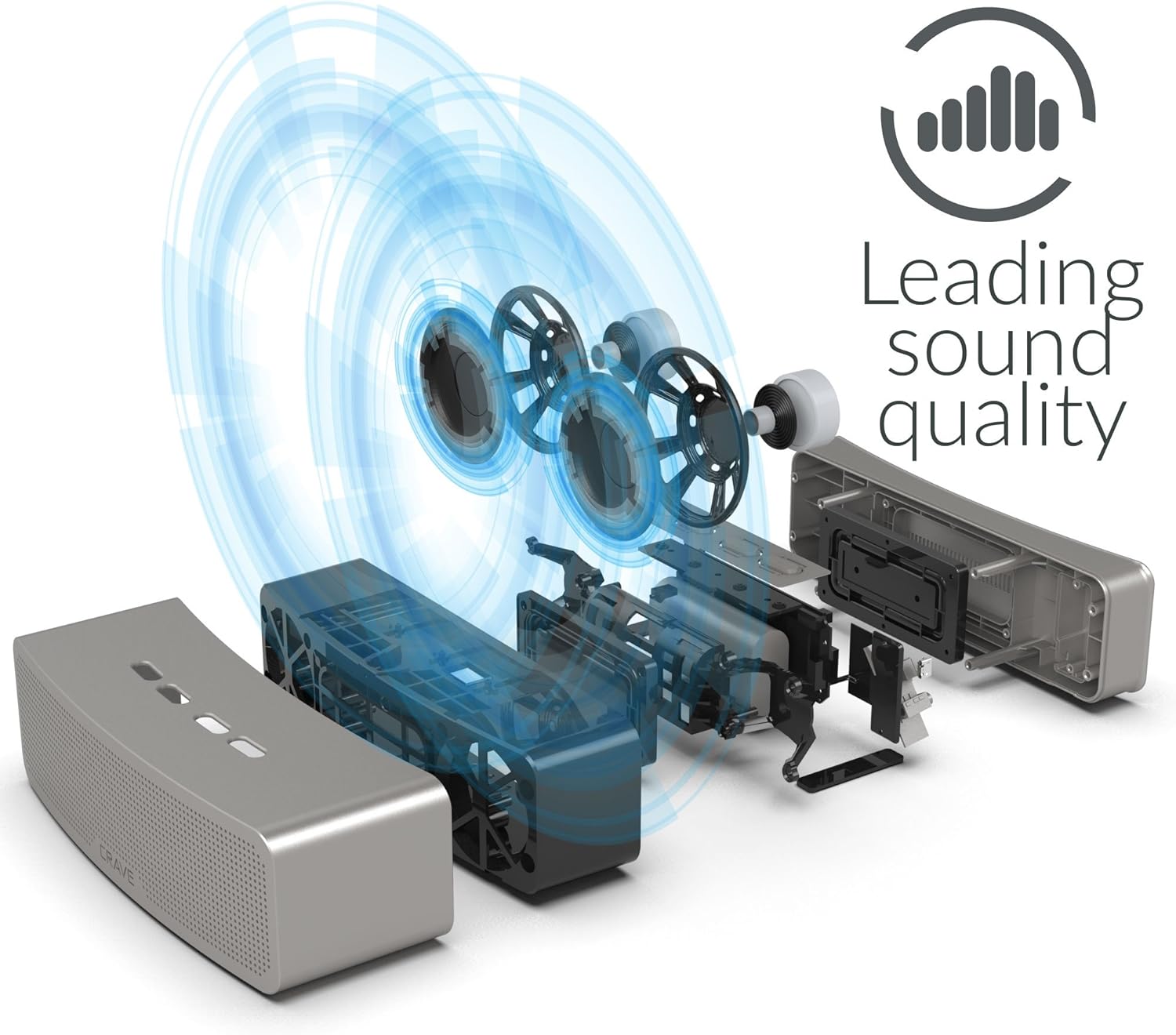 - HIGH-FIDELITY AUDIO: This innovative Bluetooth portable speaker provides gorgeous clarity and deep, thumping bass with wide range thanks to dual sound drivers.