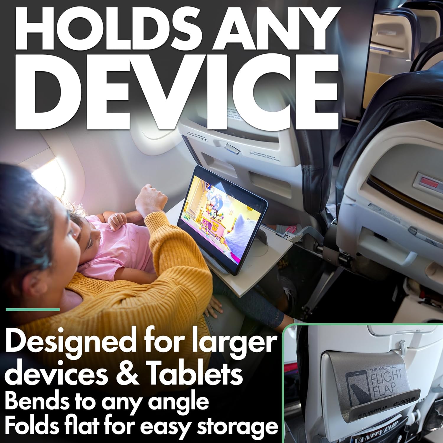 - FOR PHONES, TABLETS, BOOKS – The FLIGHT FLAP XL's travel tablet stand and kindle holder accommodates a wide range of phones (iPhone, Android), small tablets and e-readers (iPad, MS Surface, Google Pixel, Amazon Fire, Kindle) handheld gaming consoles (Nintendo Switch) or your favorite books.
