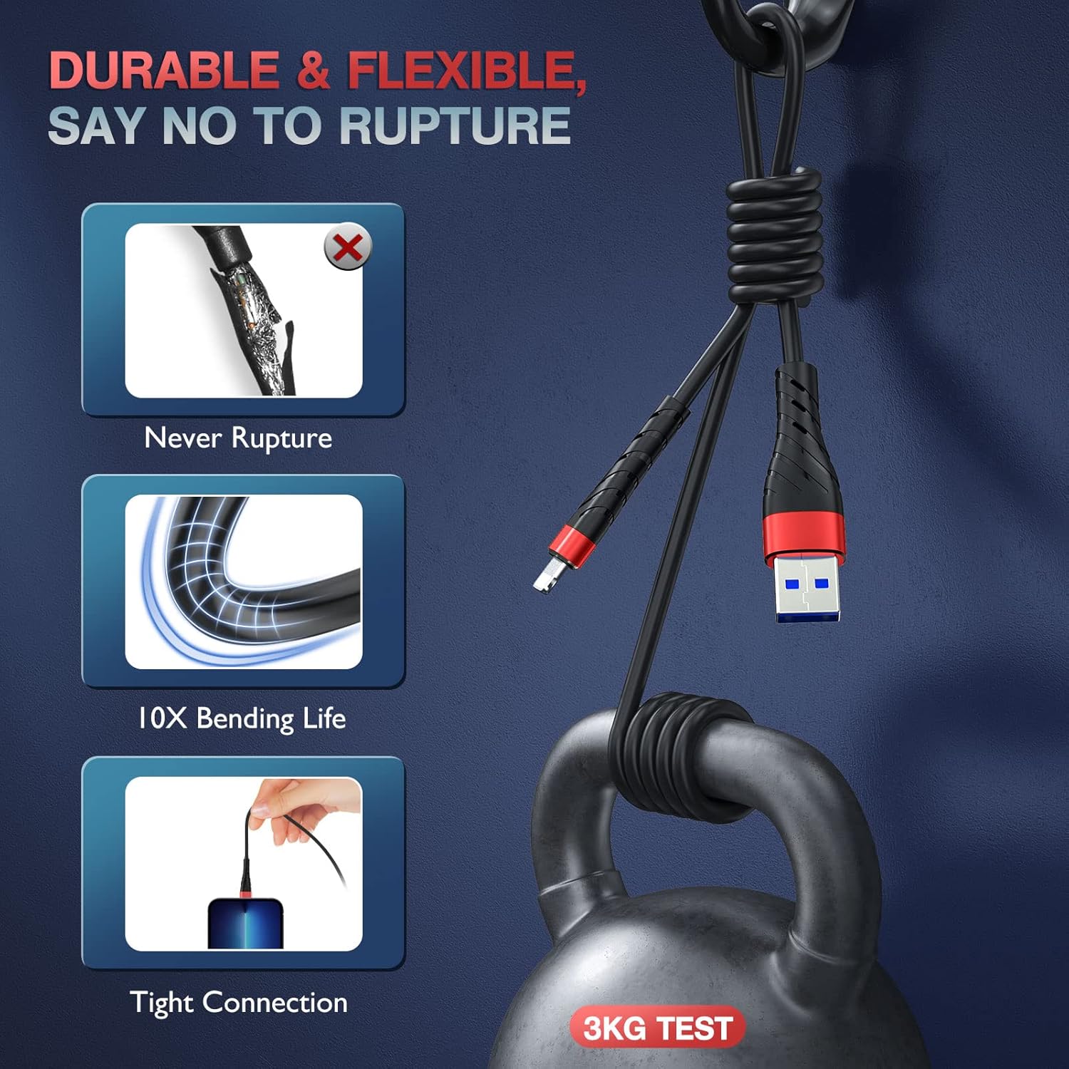 - [ TPE Coated Outer layer Craft ] - TPE material is environment-friendly, safe, non-toxic and soft to touch. It also has good weather-resistance and temperature resistance. It's more flexible than nylon braided cable. And it has high resilience, so it won't knot easily.