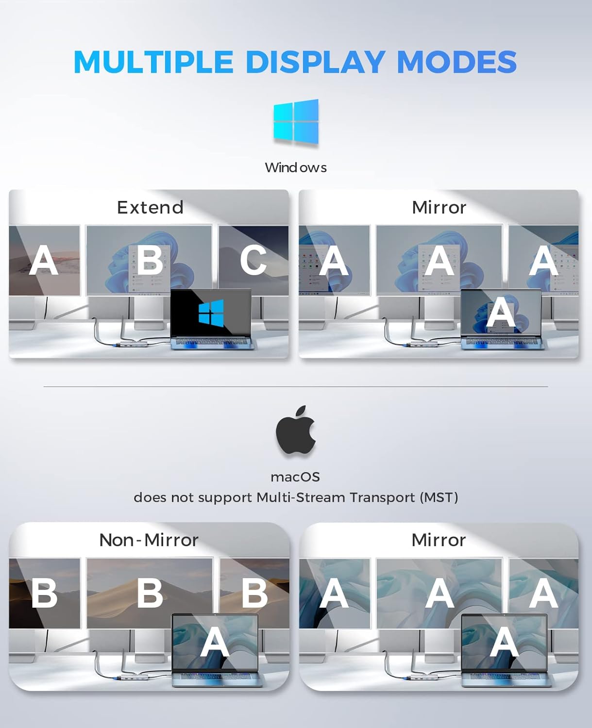 - ăTriple Monitors Display FlexibilityăUtechSmart conquers this technical hurdle to create the first USB C docking station with triple display capability on the market. the UtechSmart docking station supports single and dual HDMI monitors up to 3840x2160@30Hz or triple monitors up to 1920x1080@60Hz. Three monitors modes Boost your efficiency 3 times. Note: It does not support extend mode for macOS.