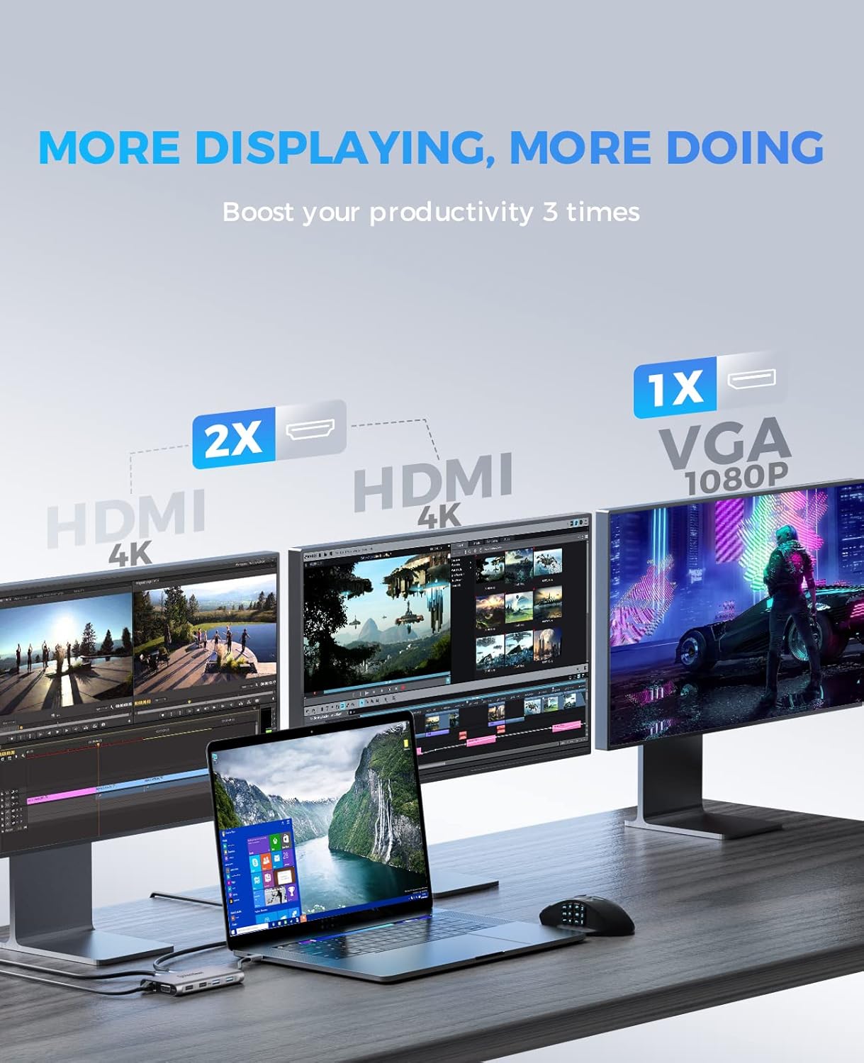 - ăUltra-portable & Compact Powerful Workstationă You could easily put the docking station in your bag or pocket. Designed from rolled aluminum to be durable yet lightweight, lighten your load and ditch the extra cable adapters, and consolidate all features with this Plug and Play laptop docking station. Including 2x 4K HDMI, VGA, USB-C charging, Gigabit Ethernet, SD/TF card slot,2x USB 3. 0 Ports and 2x USB 2. 0 Ports.