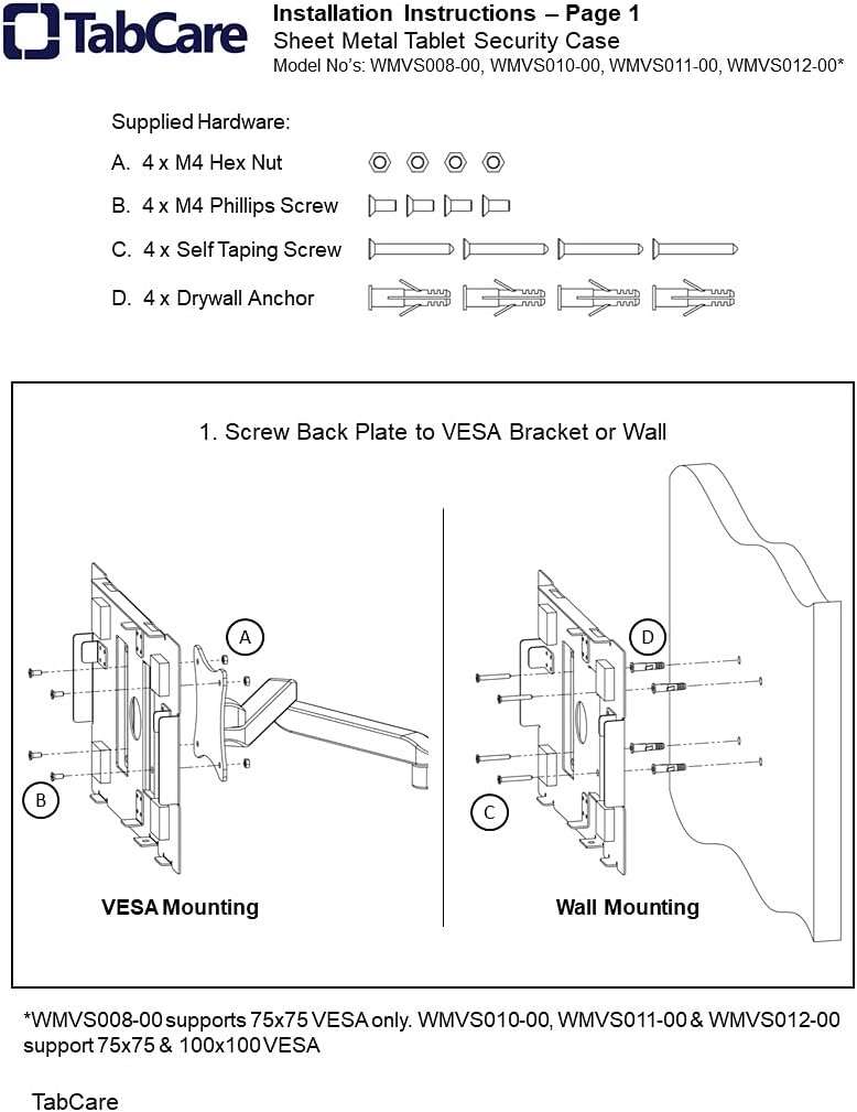 - VESA 75x75mm 100x100mm Standard, Compatible with Samsung Galaxy TAB A 9.7