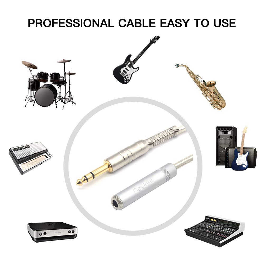 Devinal 1/4 inch Extension Cord, 1/4" Male to Female Cable, 6.35mm Quarter inch Headphone Extender Gold Plated Nylon Braided Durable Audio Cable Stereo Cord, 10 Feet 3Meters