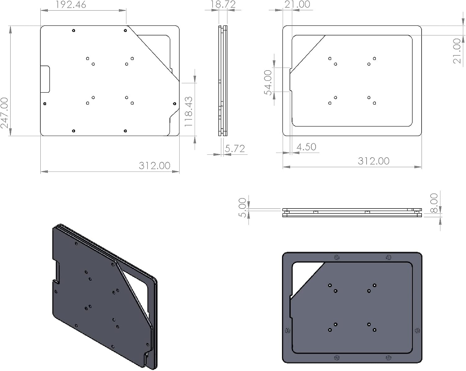- Material : Black Acrylic; Dimensions : 312mm x 247mm x 20mm ; weight : 1.3lb (w/o tablet)
