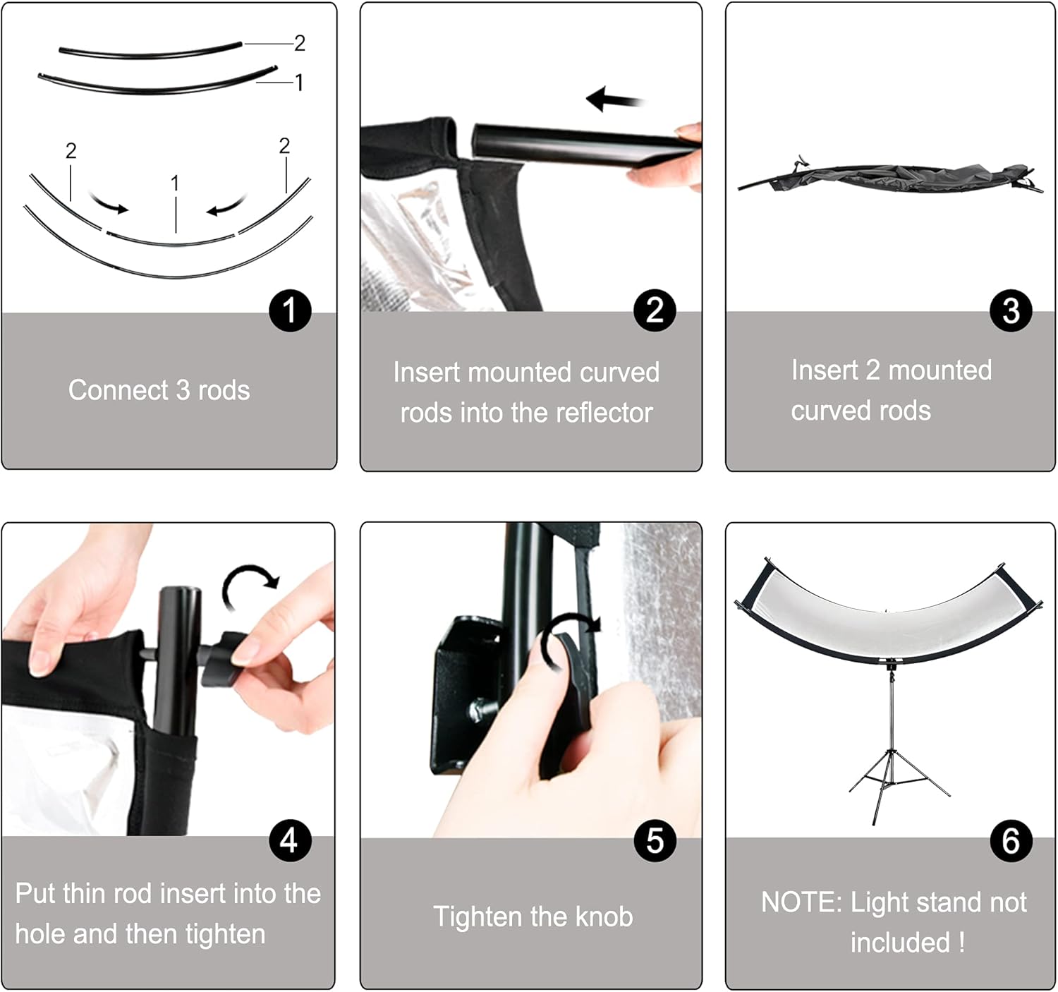 - EASY TO ASSEMBLE & CARRY:This Photography Reflector Only Needs A Few Steps to Complete The Entire Installation Process,Come with User Manual/Portable Bag Convenient for You to Install/Carry.The Tilter Bracket can be Directly Mounted on Any Light Stand