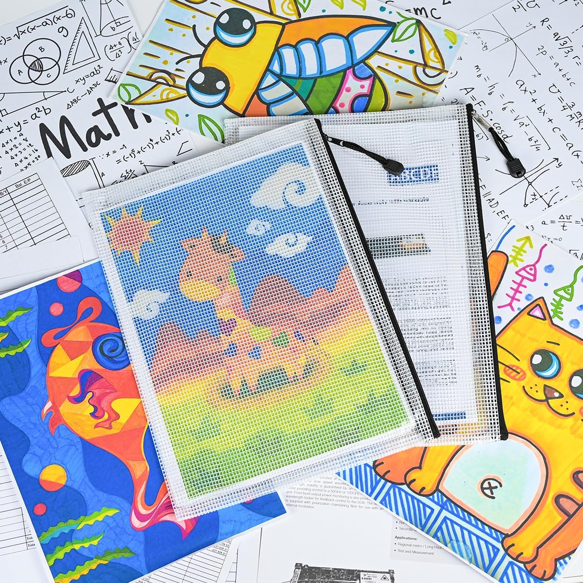 - 10 PCS Plastic mesh zipper bags, 13.4 x 9.4 inch A4 size. Widely used in office supplies, school, home daily life, hospital and travel. These pouches could meet your needs in all ways