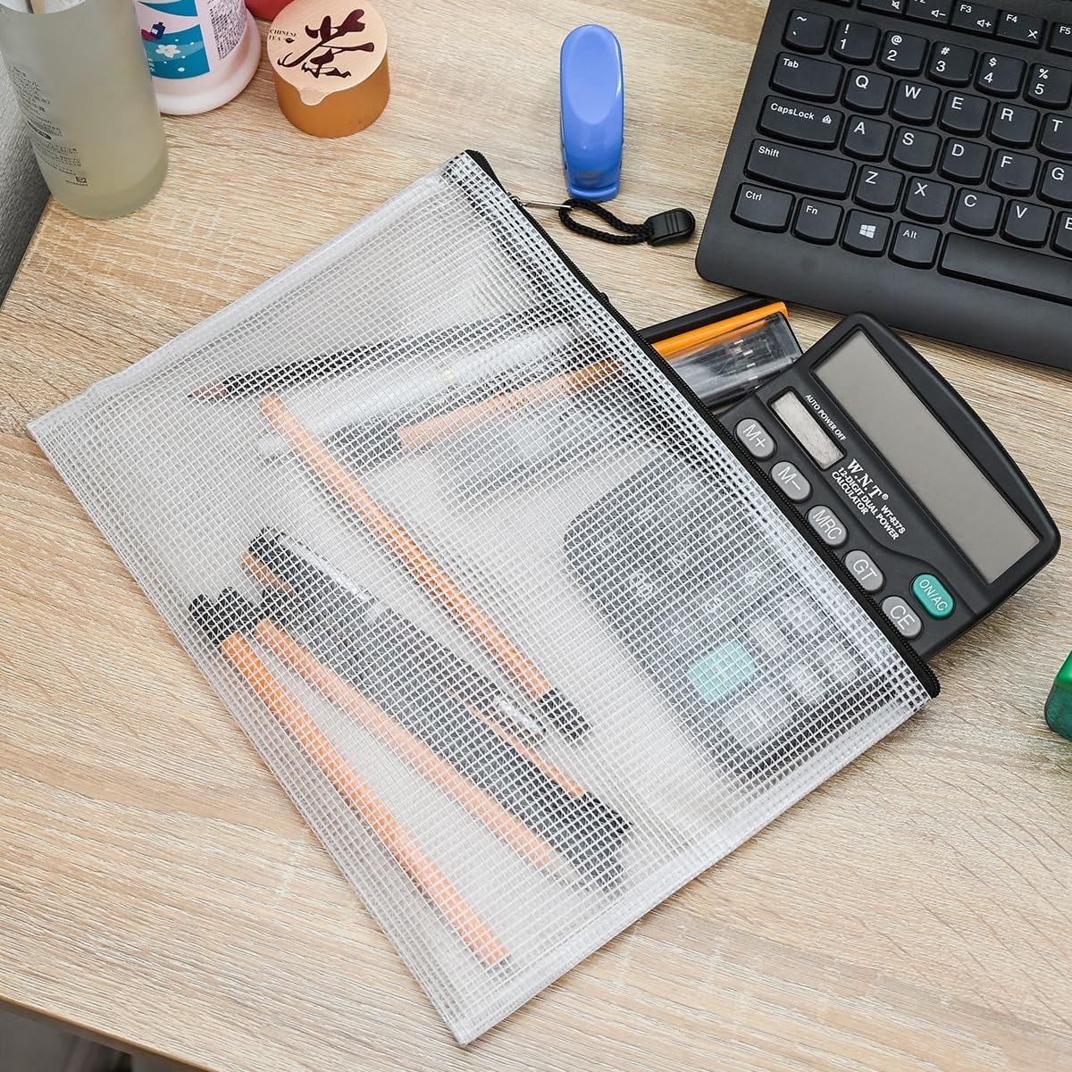 AUSTARK 20 Pcs Zipper File Bags, Plastic Mesh Pouch, Board Game Storage Bag, Waterproof Bags for Office School (B5 Size 11.4''x8.2'', White and Black)