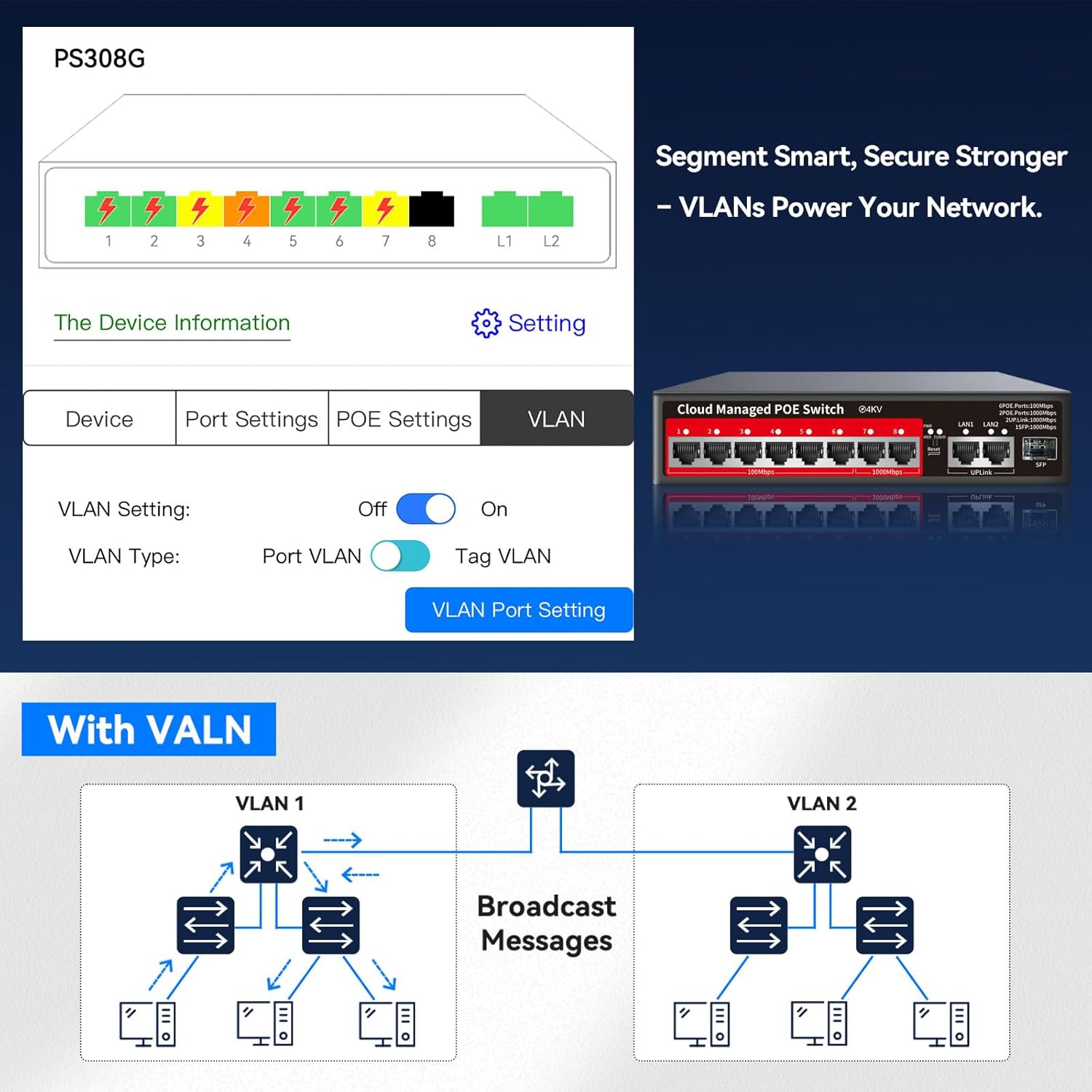 8 Port PoE+ Switch | Easy Smart Managed Ethernet Switch | Support VLAN, QoS | 120W Total PoE Budget | Fanless Metal | Plug & Play (Desktop/Wall Mount)