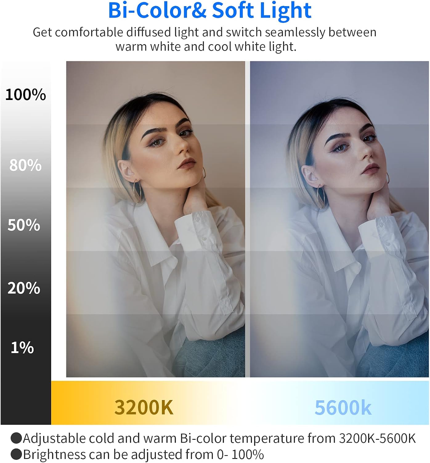 - 【Excellent LED Studio Light】Control your gaming light from 0-100% brightness and 3200K-5600K color temperature. A higher color index CRI 97+ provides you the true and natural color, and the built- in diffuser ensures ultra-soft illumination.