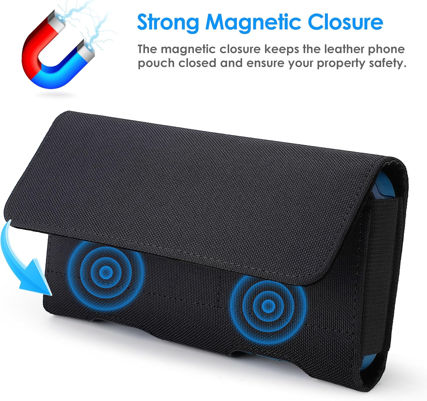 - Durable Nylon Holster with Magnetic Closure --- Made from rugged ballistic nylon, this horizontal phone holster features a reliable magnetic flap for quick, secure access — ideal for everyday use, work, or outdoor activity.