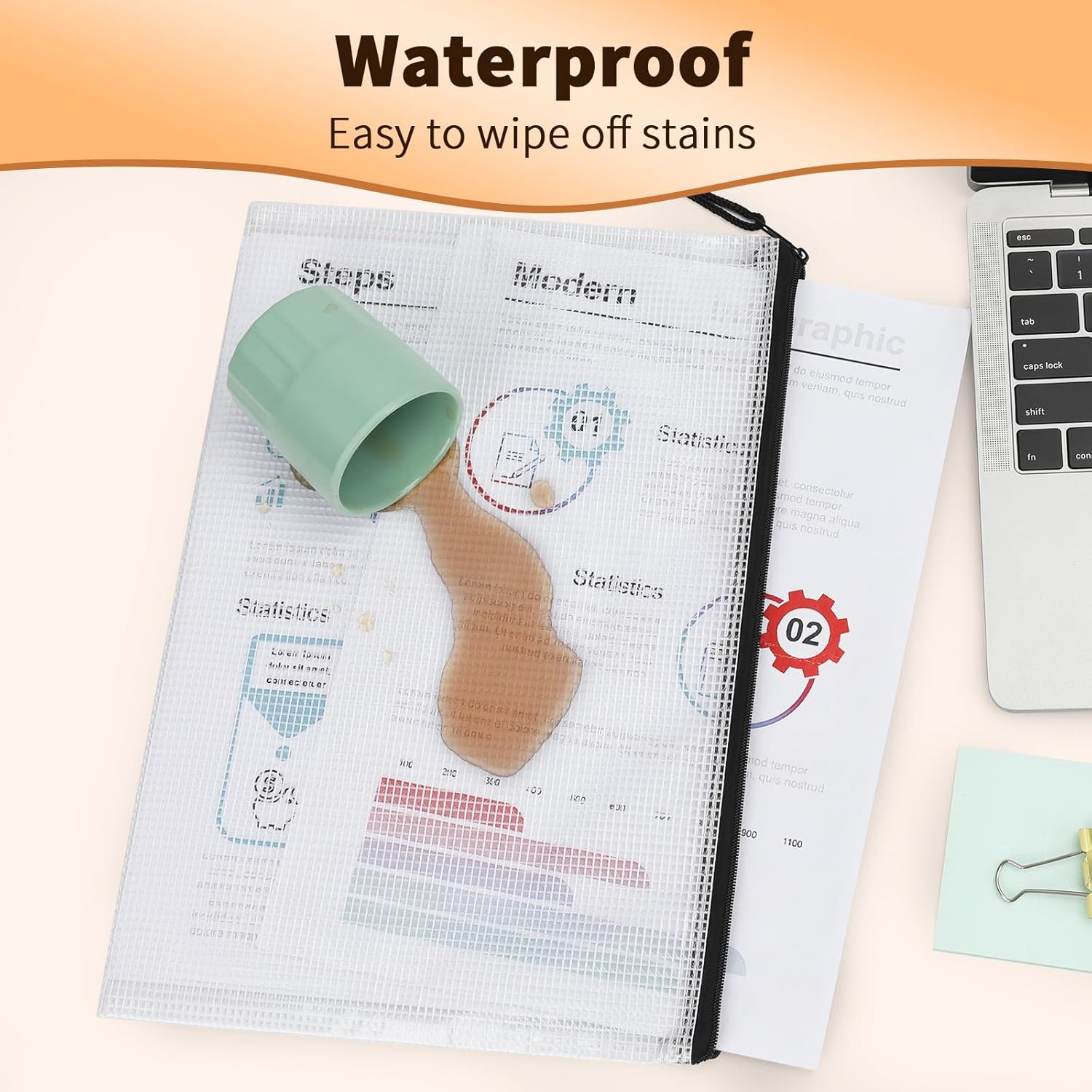 Umriox Zipper Mesh Document Pouch, 9.5x7.1 in (Black, 18 Packs), Clear Zipper Pouches, Waterproof Zipper Pouches for Office Supplies Cosmetics Travel Storage