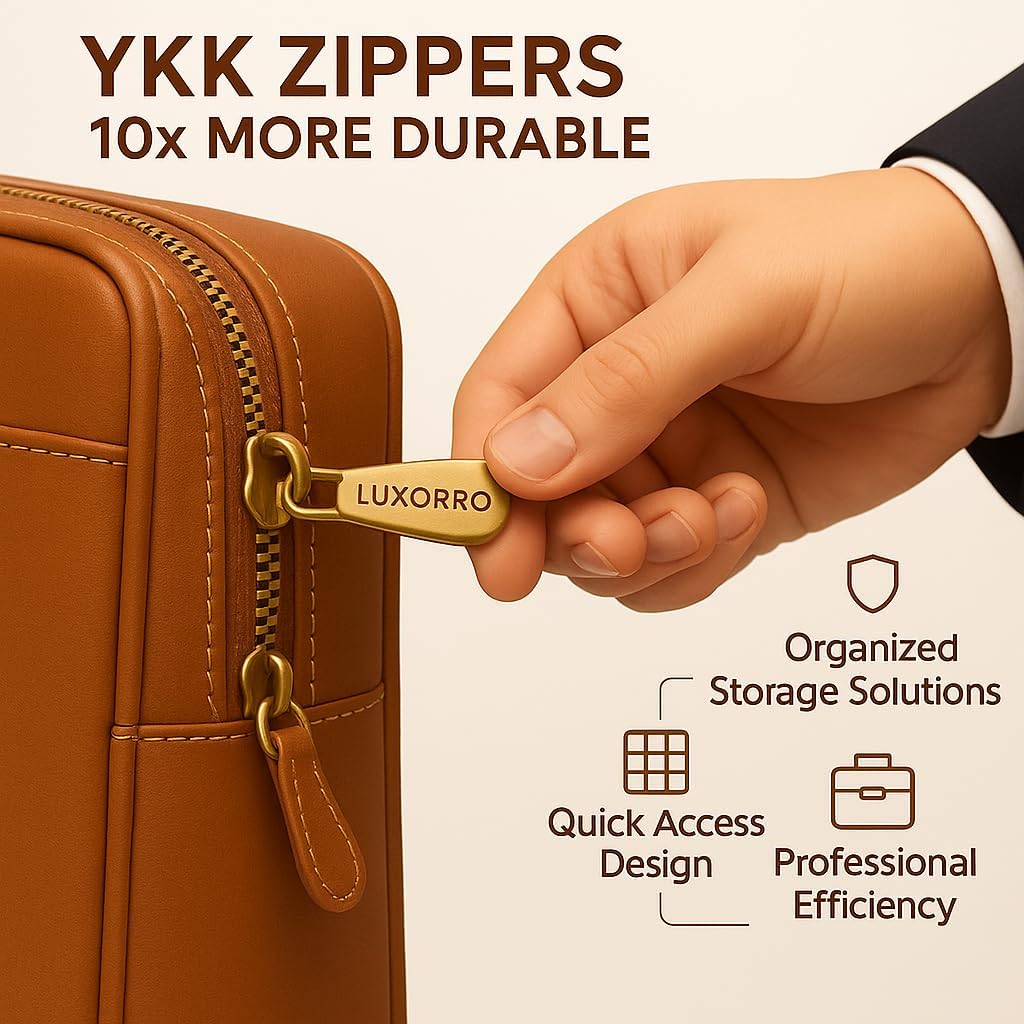 - PRODUCT DESCRIPTION: The Luxorro leather commuter briefcase is designed for the working professional's travel and everyday use. Handcrafted with rich full-grain leather and solid brass hardware, the briefcase will make you feel confident, assertive, and good-looking.