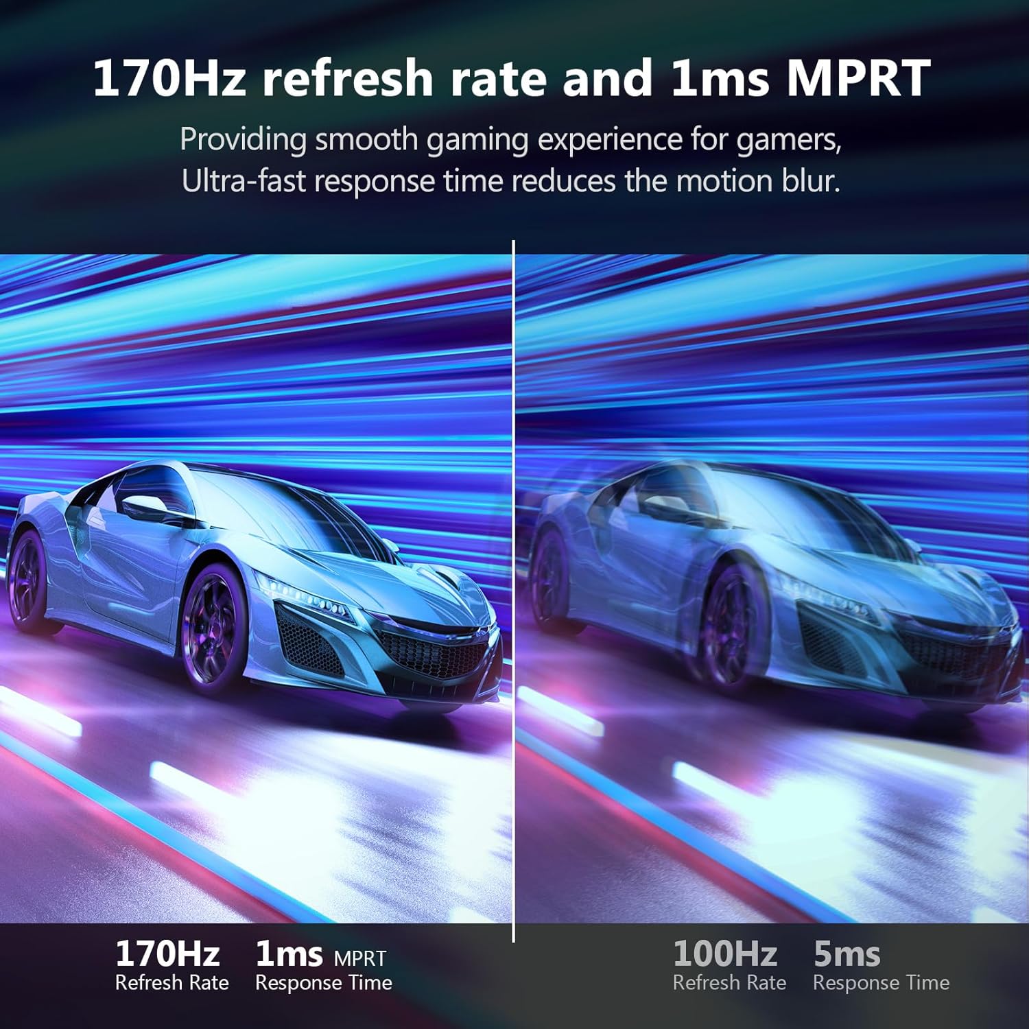 - Unparalleled Gaming Experience: Enjoy the ultra-smooth gaming experience and crystal 2K QHD resolution with rapid 170Hz refresh rate(via DP port) and 1ms response time. Premium flicker free virtually eliminates the screen tearing, stutter and input latency, bringing unprecedented smoothness and fluidity to your games and action movies. The built-in FPS and RTS gaming mode are for an enhanced gaming experience.