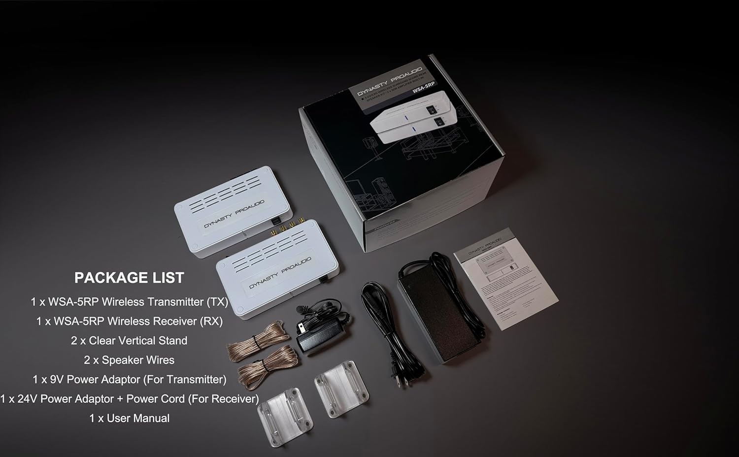 WSA-5RP Wireless Surround Sound Rear Speakers Kit with 2 x 50W Amplifier Built-in, 5.2G / 5.8GHz Dual Band Selectable, Total 106 RF Channel Auto Switching