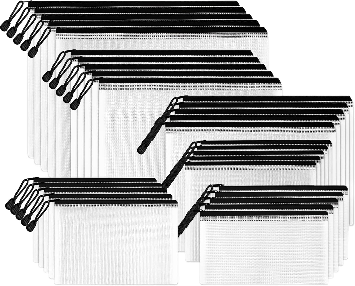 SUNEE Multisize Mesh Zipper Pouch (Black, 30 Packs), Mesh Bags with Zipper for School Office Supplies, Puzzles & Games, Accessories, Waterproof Zipper Pouches for Organizing