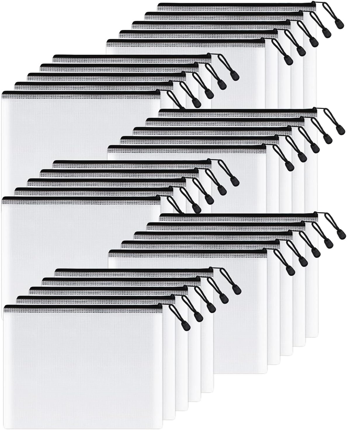 SUNEE Mesh Zipper Pouch 7x11 in (Black, 30 Packs), Mesh Bags with Zipper for School Office Supplies, Puzzles & Games, Travel Accessories, Waterproof Zipper Pouches for Organizing