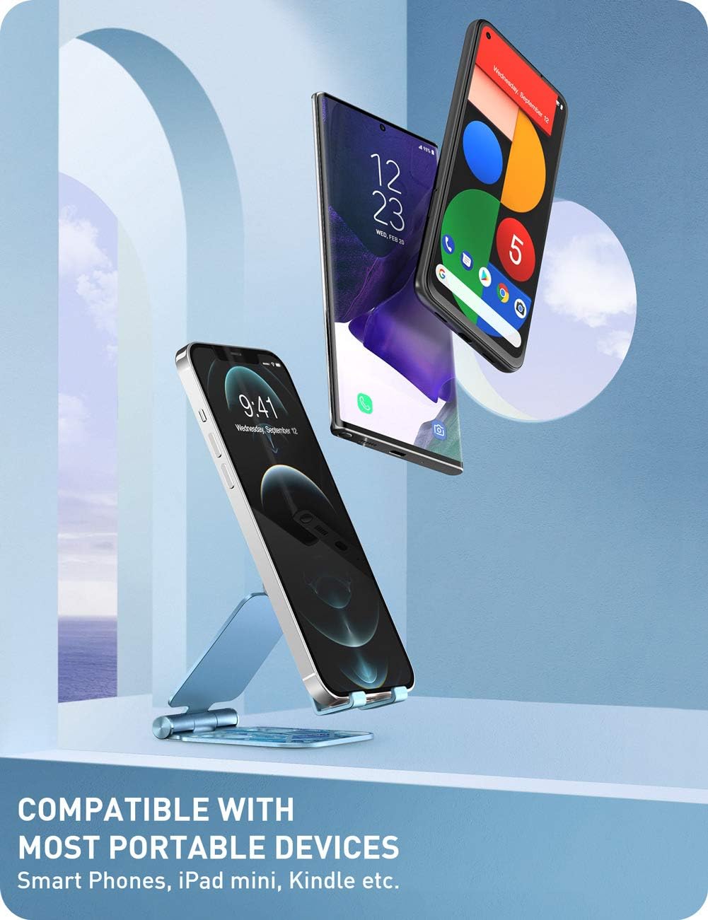 i-Blason Cell Phone Stand for Desk, Cell Phone Holder, Fits All Smart Phones, iPhone 16 15 14 13 Pro Max, Foldable Phone Stand Holder, Blue