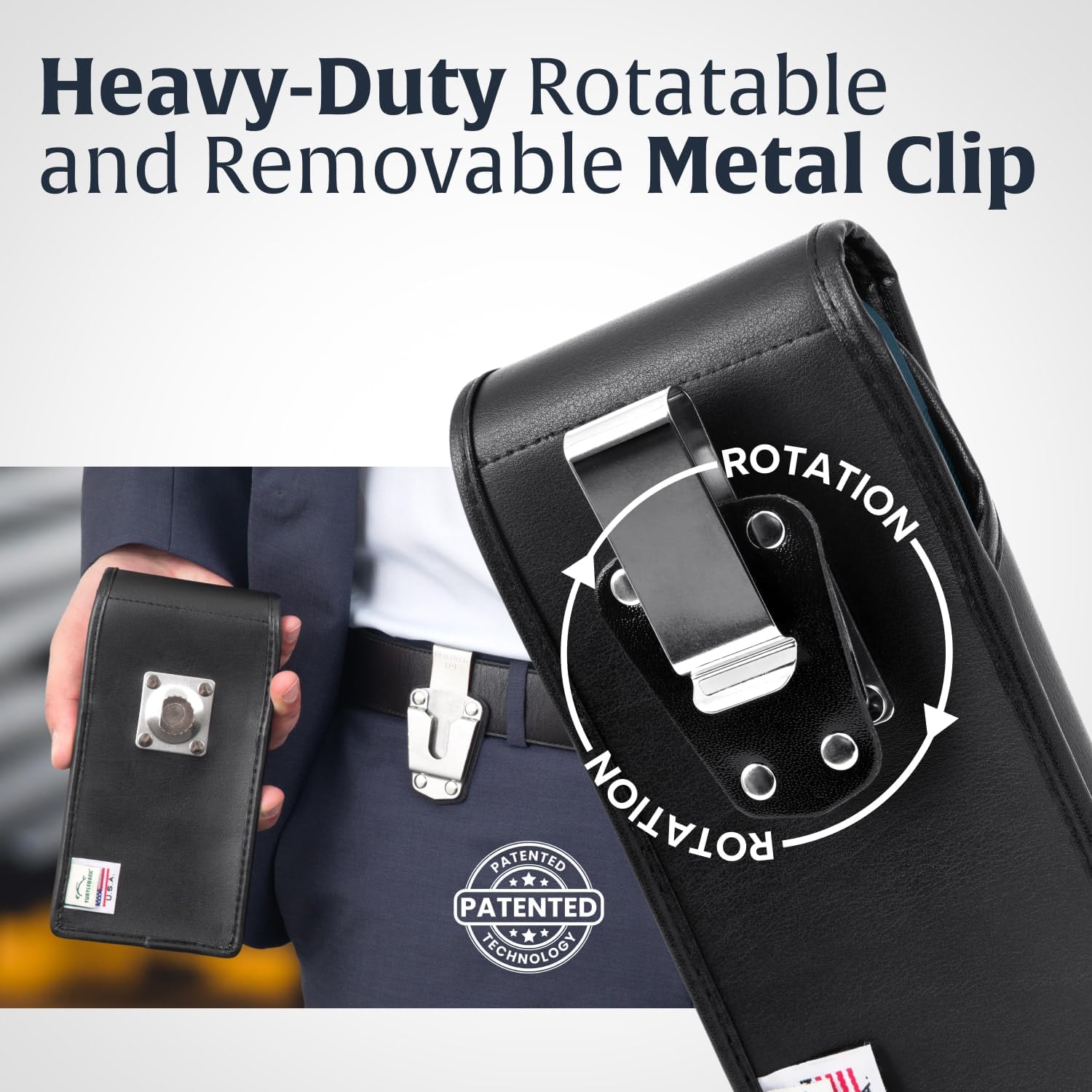 - DESIGNED AND BUILT IN THE USA: The Turtleback leather phone case is crafted from premium imported leather, offering a sleek look and durable feel that complements any style. This phone holster fits vertical on your belt and features a secure, rotating ratcheting belt clip for reliable everyday carry. Whether you need a rugged iPhone belt holder for men or a stylish holster for work, we have you covered. Turtleback has been proudly designing and building cases in the USA since 2001.