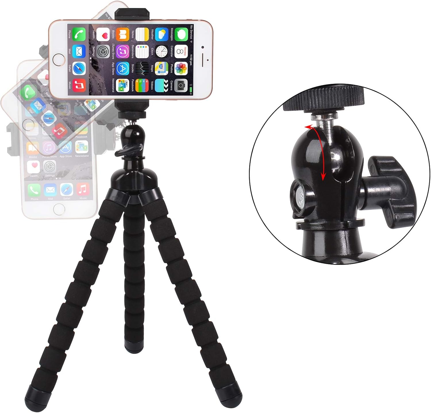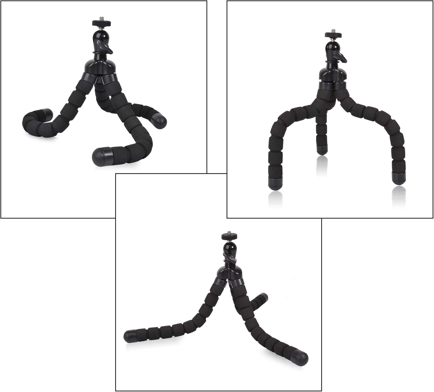 - Universal Compatible: This phone tripod features with 1/4 screw on the top, and once the ball removed from the joint, you will see adapter for Go Pro or sports camera. So you can mount different device onto it as long as it’s not heavy, like smartphone, actions camera, lightweight camera, webcam, projector….