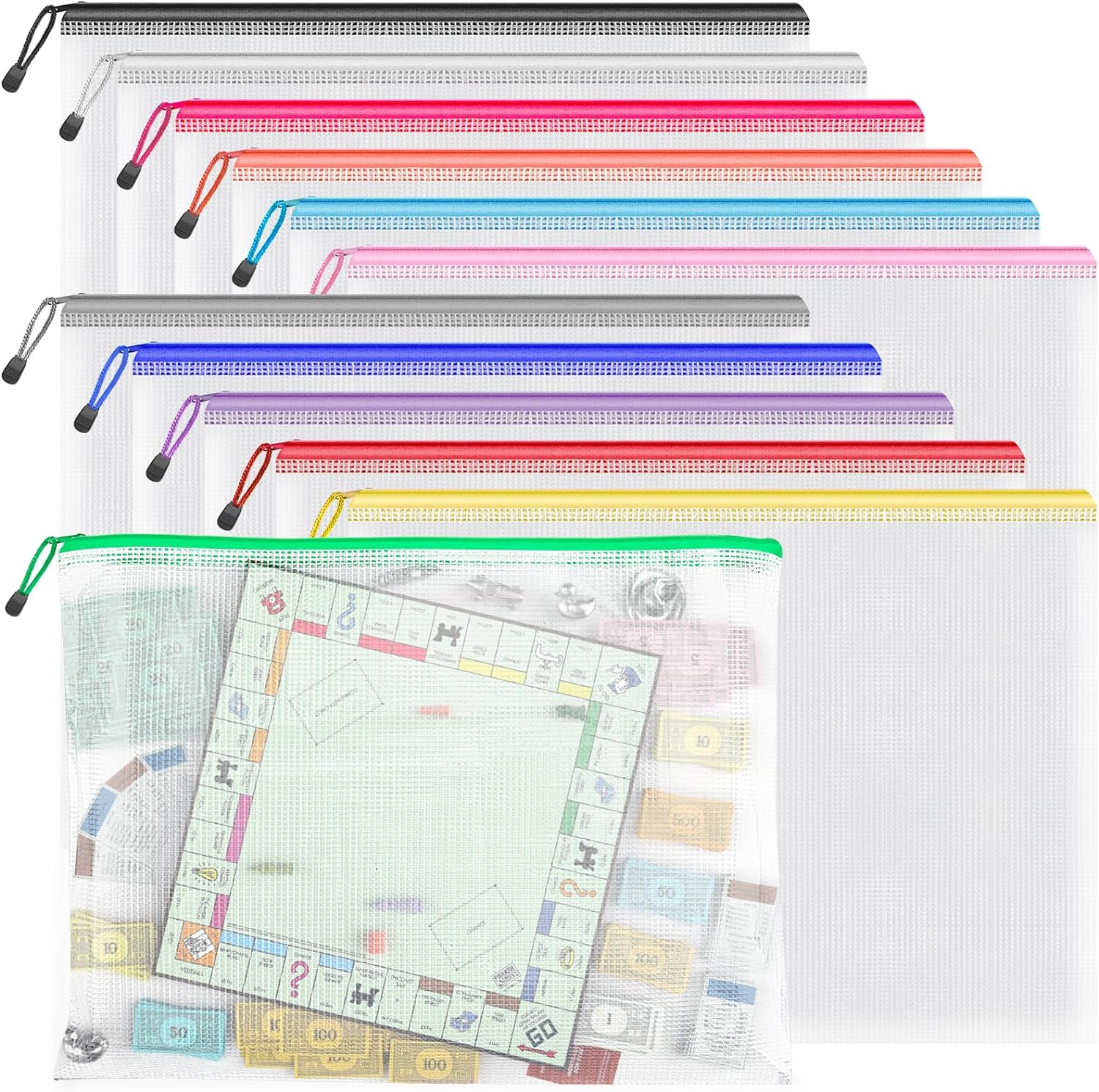 Umriox Zipper Pouch, 16.9x12.4 in (12 Colors, 12 Packs), Extra Large Zipper Bags, Waterproof Zipper Pouches for Office Supplies, Puzzles, Board Game Storage & Cross Stitch Projects