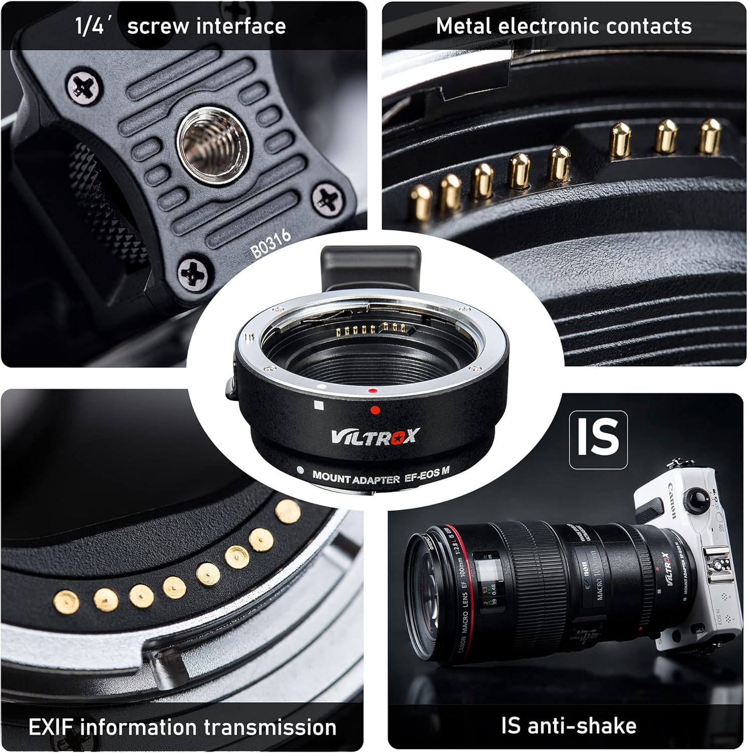 - Anti-shake stabilization function:VILTROX ef-eos m lens adapter supports Built-in lens anti-shake stabilization function,you can take clear and complete works even when the camera is heavy