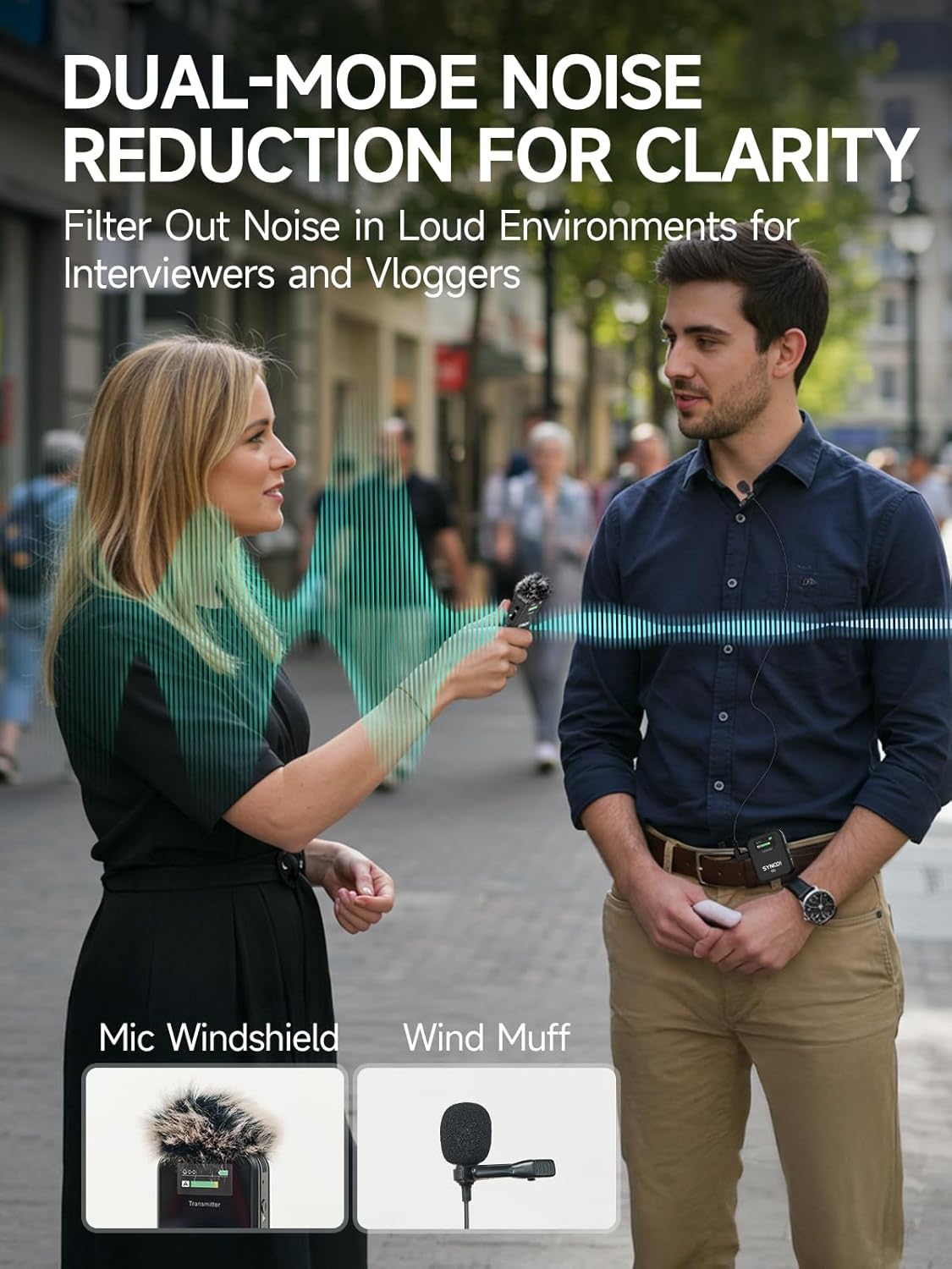 - One-Button Muting & Real-Time Monitoring: The switch is designed to mute your wireless microphone for a short pause in teamwork or device setup rather than turn on/off the system repeatedly. The receiver has a 3.5 mm headphone jack for monitoring recording status during shooting in real time