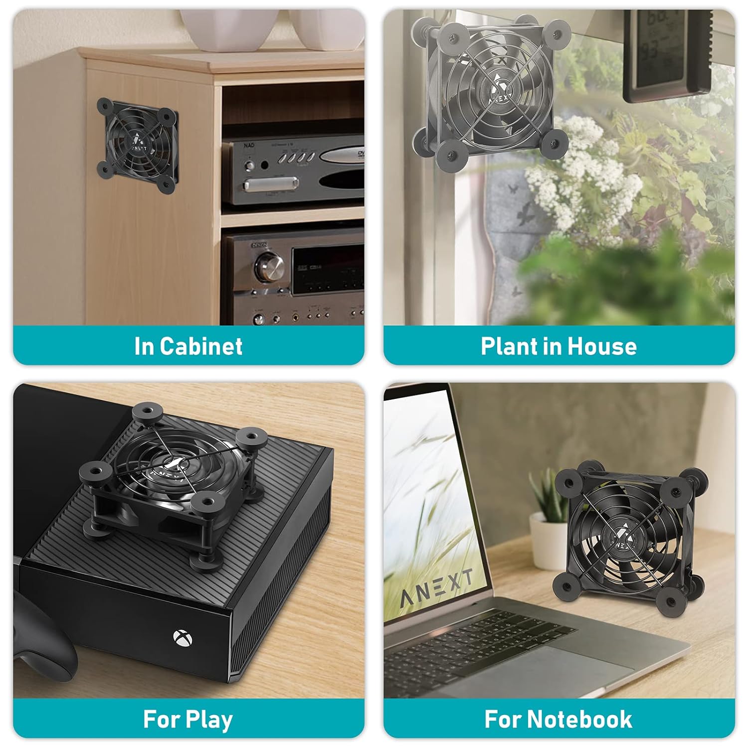 ANEXT, USB Fan, USB Computer Fan, Silent Fans for Receiver DVR PlayStation Xbox Computer, (80mm, Black Dual Packs)