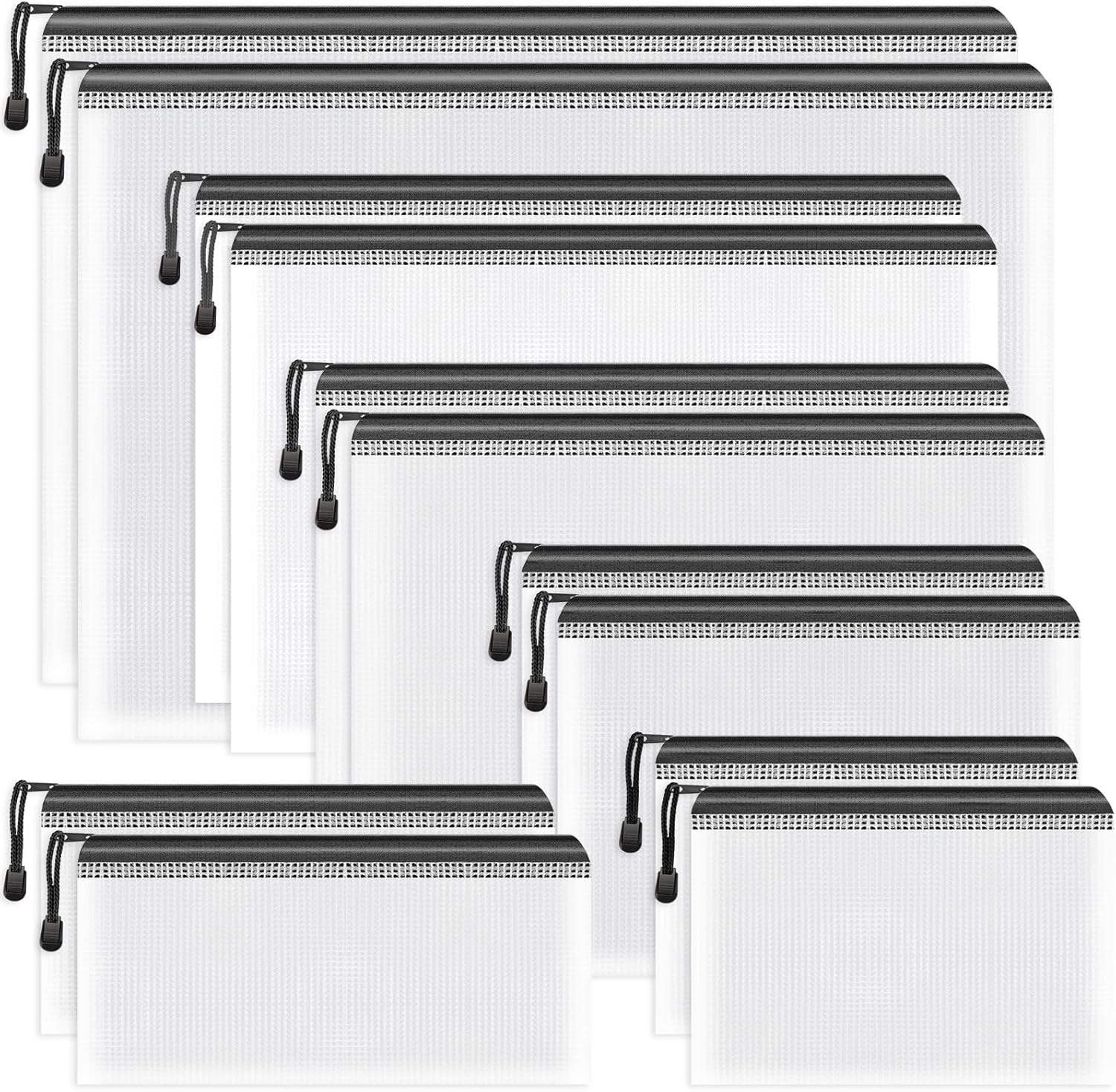 - Translucent Design: Package includes 12 black zipper bags. The translucent plastic zipper bag can prevent the privacy of important documents from leaking, but still can identify what the stuff in the bags