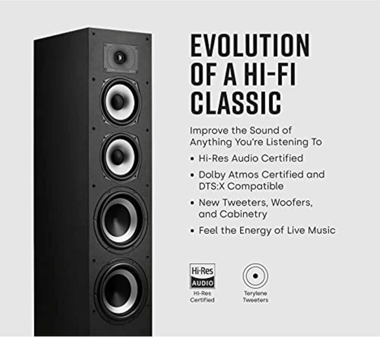 - LARGE HIGH-PERFORMANCE TOWER SPEAKER - Polk Monitor XT70 features a 1" Tweeter, (2) 6.5" Dynamically Balanced Woofers & (2) 8" Passive Radiators that deliver open mid-range & punchy, responsive bass in an immersive soundstage in your movies, TV & music