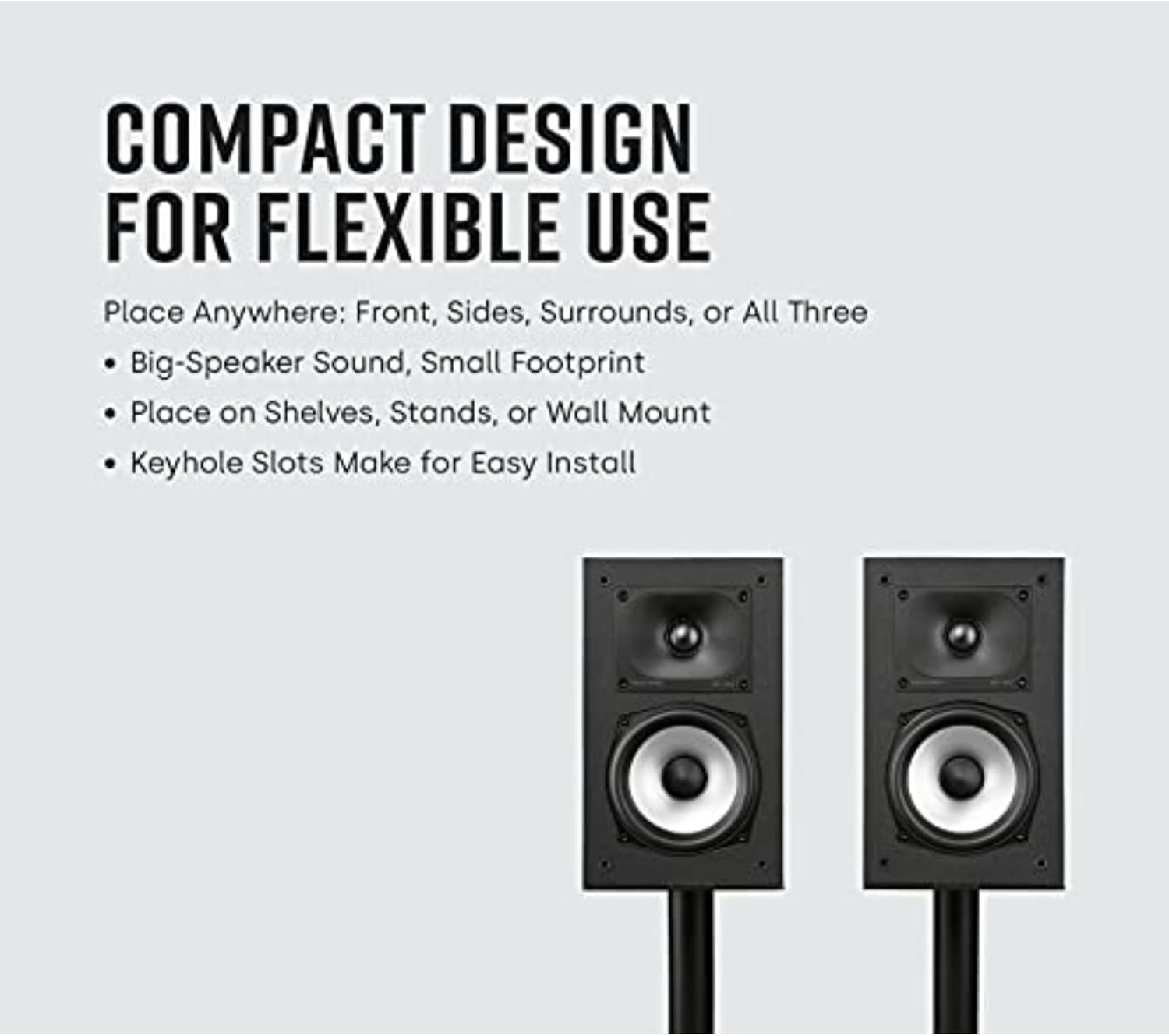 - VERSATILE PLACEMENT OPTIONS - Delivering maximum performance in a compact size, the speakers can be placed on a bookshelf, or a speaker stand (sold separately). Use the MXT15 as front, surround or rear speakers for a stunning home theater experience