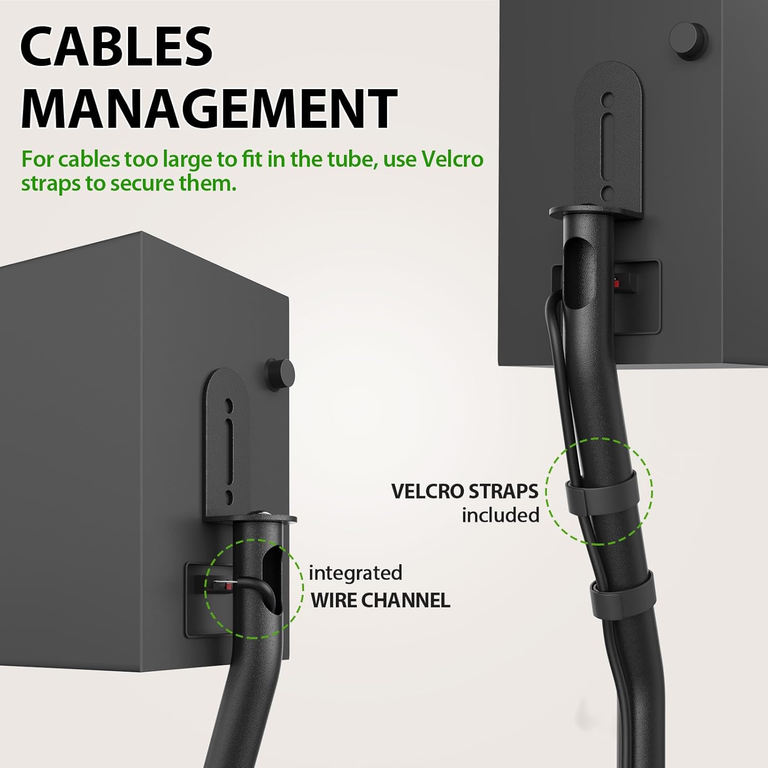 - Cable Mangement:The floor speaker stands keep cables clean and organized with internal channel ( 0.6“ W x 1.2” H) for a clean and tidy appearance. Or external velcros in package to help run the cable around the stand tube.Applicable Speaker Screws: M4X30mm Bolt, M6X30mm Bolt