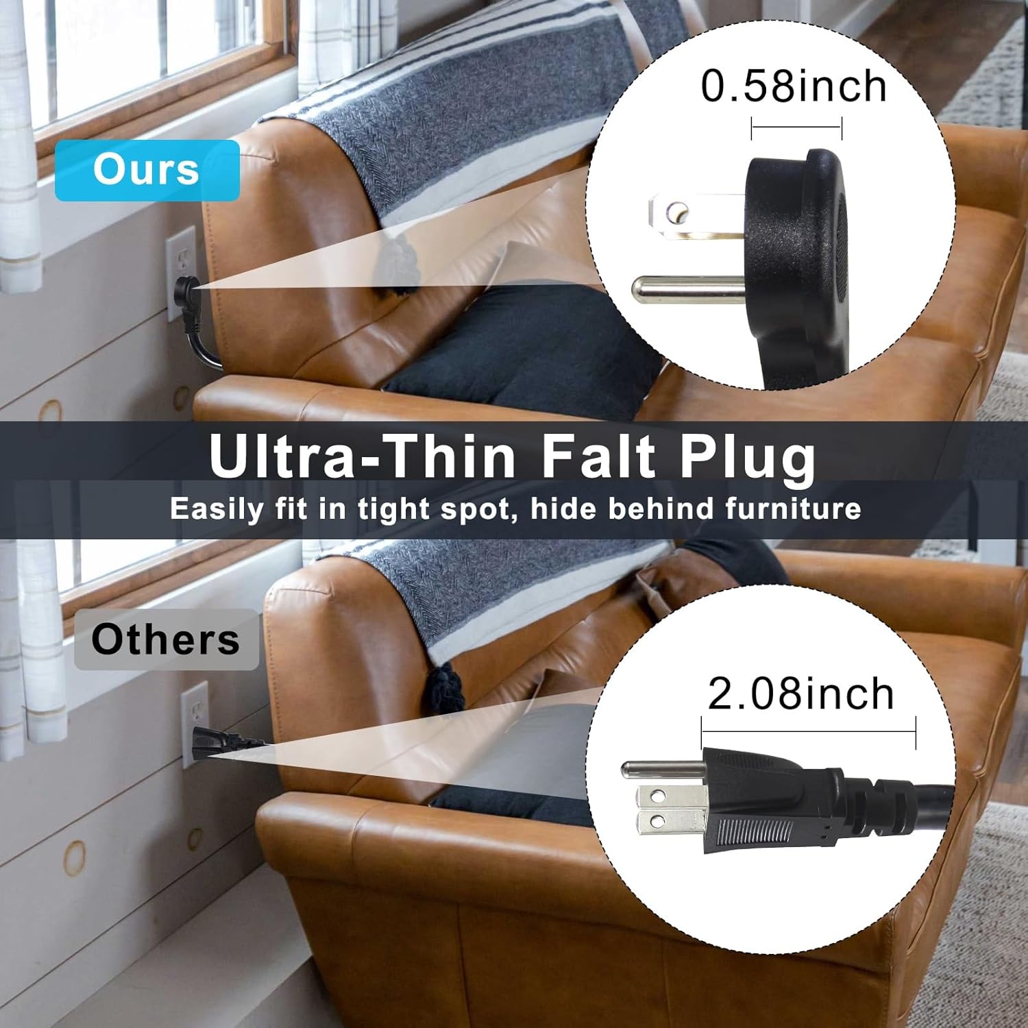 - 【Flat Plug】This Y Splitter extends your power cord and angles the plug off to the side so that it can sit flat against the wall and free up other outlets. Position your furniture close to the wall, maximize space on your power strip, surge protector, or wall outlet.