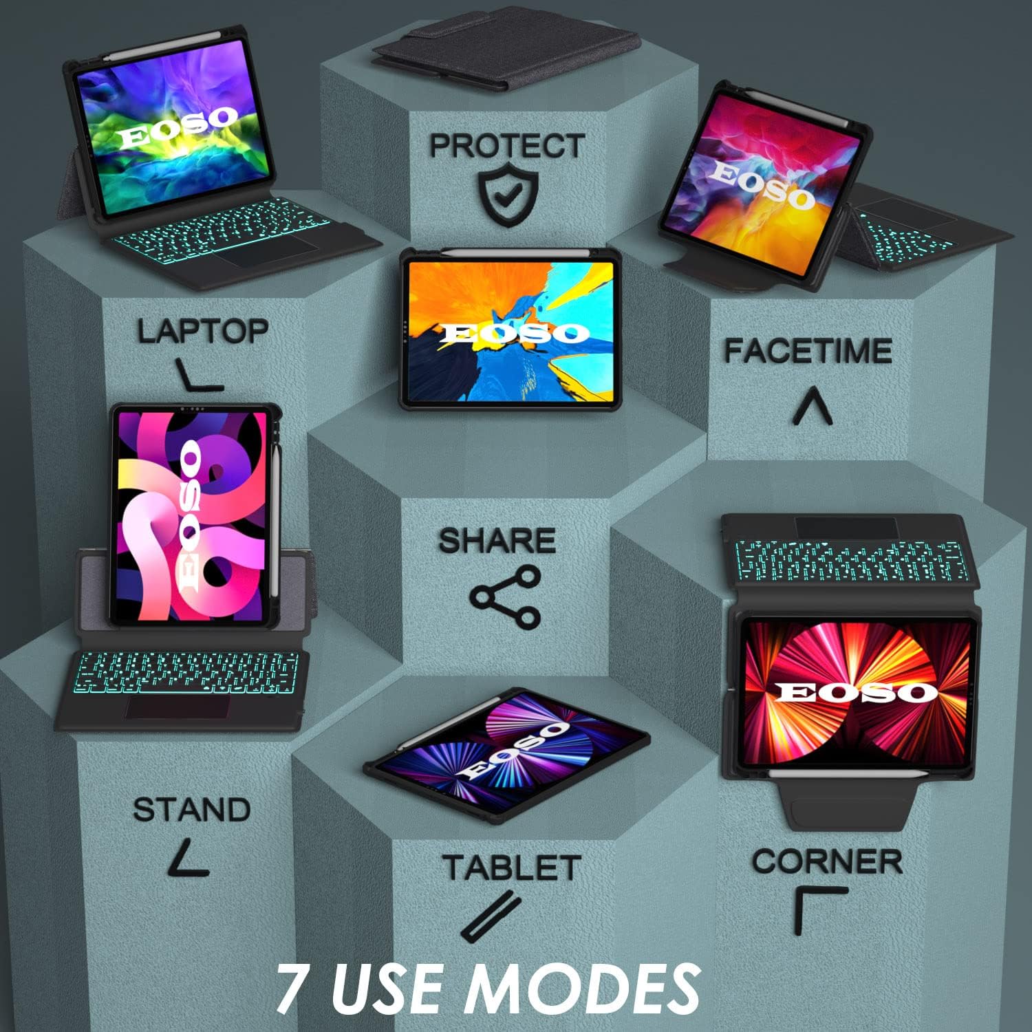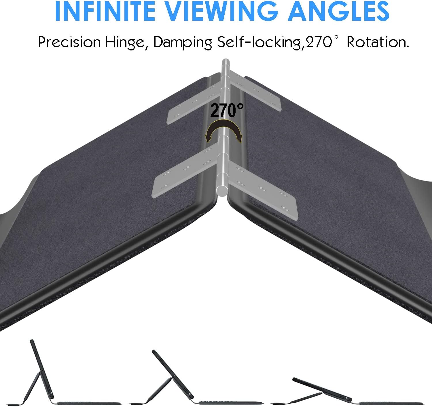 - 7 USE MODES: Unique design of iPad pro keyboard 10.9/11 inch (20,000 cycle stress tested) allows 270° rotation. You can comfortably use iPad for typing notes, reading, playing games and watching videos. 270° rotation provides multiple viewing angles to meet different visual needs and allows to change your iPad to a small laptop in seconds.