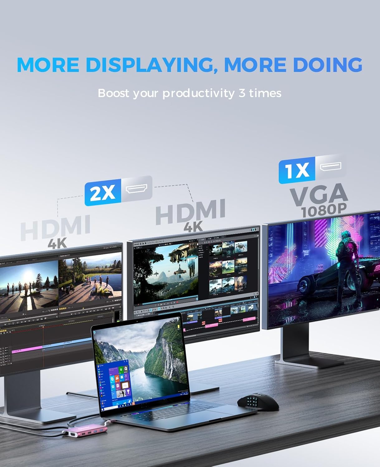 - 【Triple Display Flexibility】 Triple display modes Boost your efficiency 3 times. UtechSmart triple monitors hub supports single and dual HDMI displays up to 3840x2160@30Hz or triple displays up to 1920x1080@60Hz. Three display mode options available (mirror mode, extend mode & video wall mode). Attention: It doesn't support extend mode for Mac OS (Apple laptop) & Chrome OS.