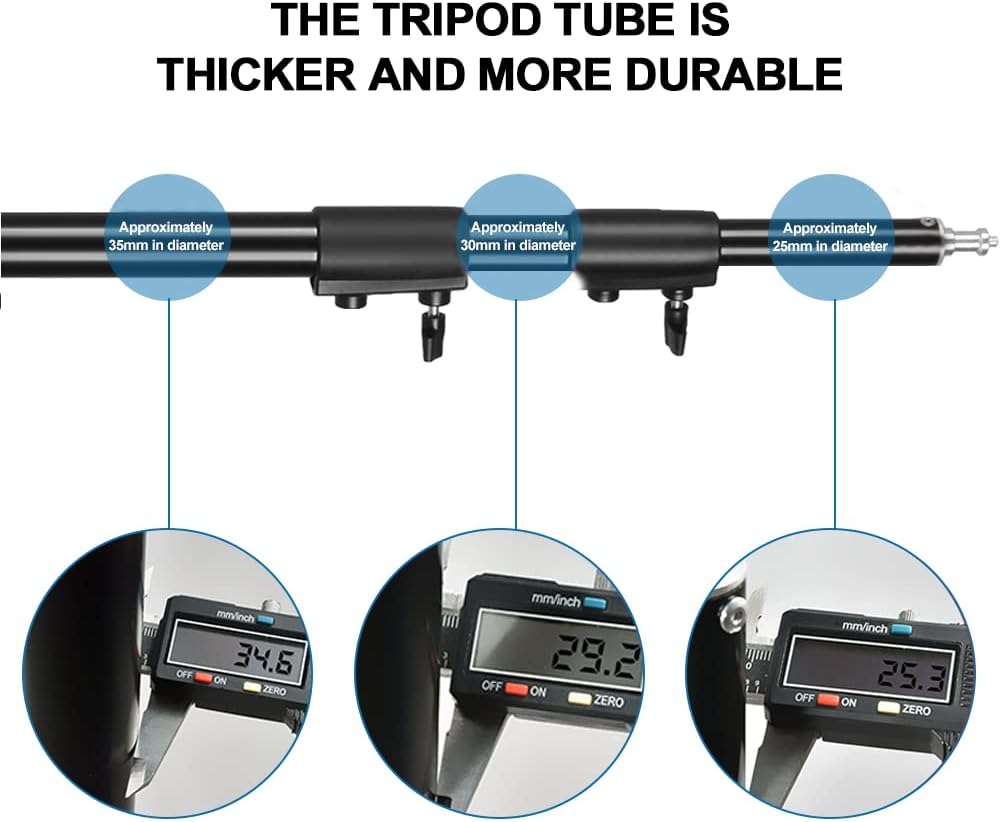 - 【Rugged and Durable Tripod】 This light tripod stand is 9.18 feet high and is made of aluminum alloy, which has excellent strength and is suitable for heavy-duty work.