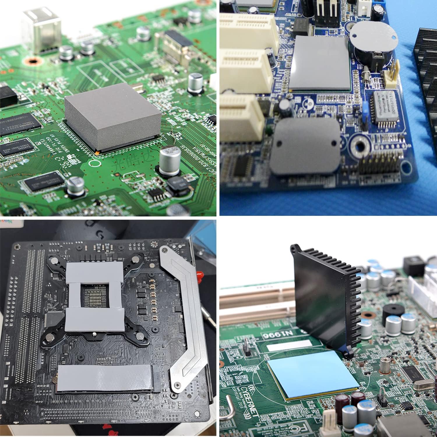 - COOL IN SECONDS -- With a thermal conductivity of 13W/mK, our thermal pad greatly improves heat transfer between the electronic elements and effectively cool the temperature down in seconds. It also provides insulation, shock absorption, extra sealing and protection for your electronic elements