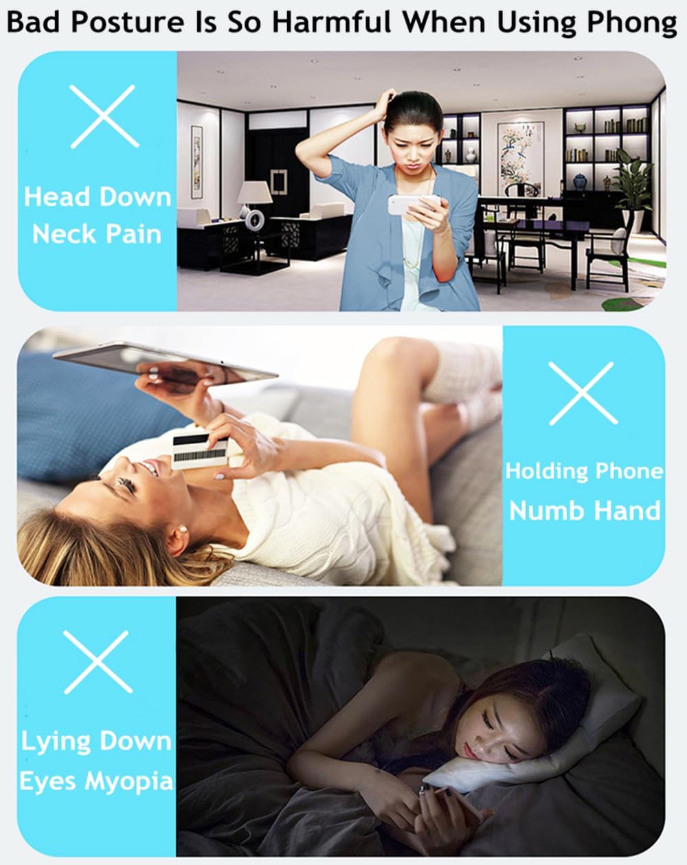 - 【RELEASE & RELAX YOUR HANDS】 This cell phone holder can better release and relax your hands while phone call, play games, do live, watch videos, reading, study, housework, beauty care, yoga, etc. It will be very useful to avoid the body pain caused by the bad postures of using the mobile phone for a long time. Great phone accessories for office, home and travel.