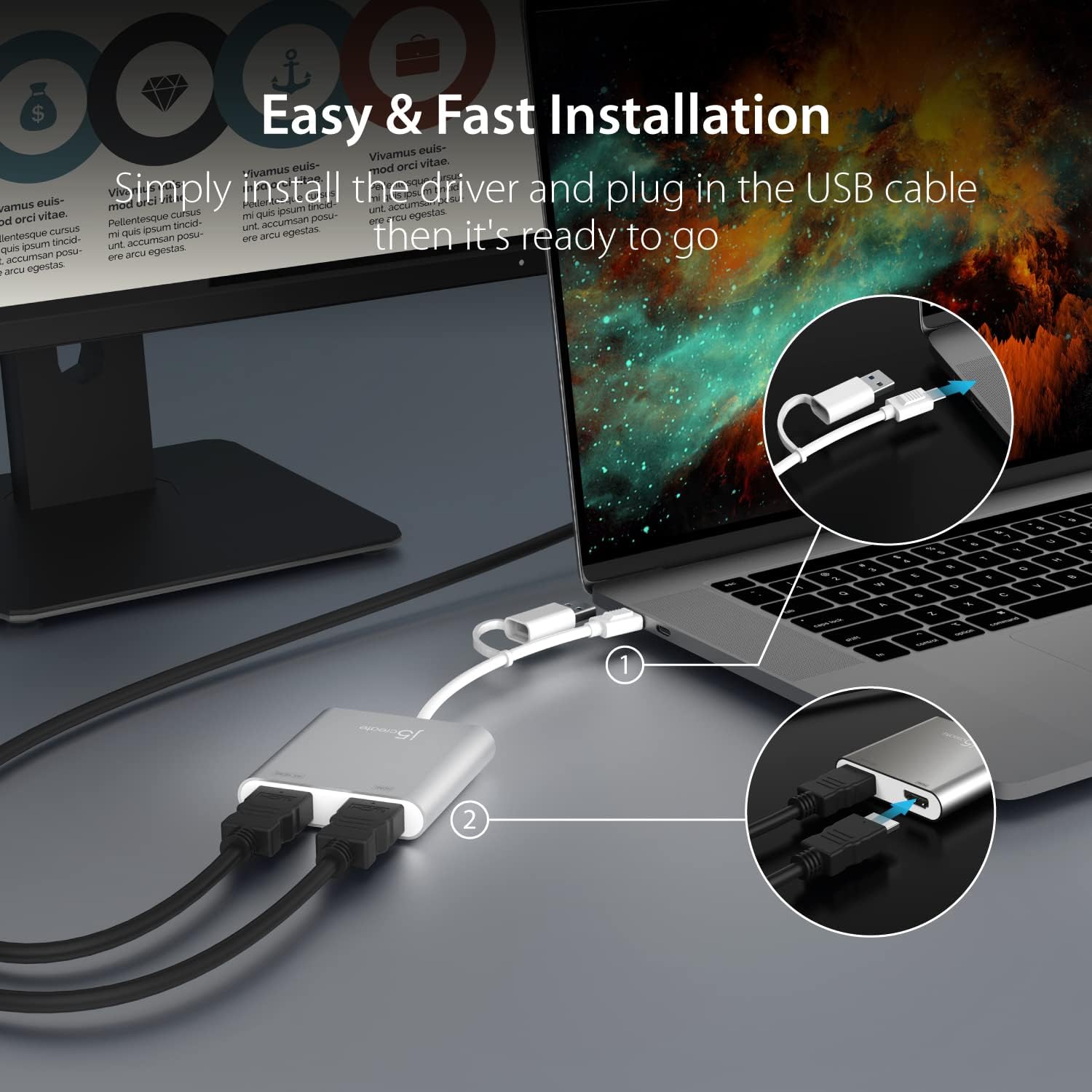 - Driver Installation Required for macOS and Windows. Please follow the quick start guide to download and install the latest driver before plug this device to your computer. Install the driver -> Plug JCA365 to your computer -> Link your monitors using HDMI cables, then you've created a multi-display workspace without the complexity.