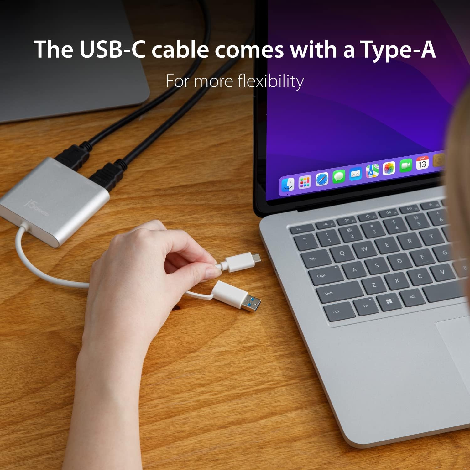- Break free from the single-monitor limitation of M1/M2 MacBook. The JCA365 allows you to add two additional displays through your USB-C port on your MacBook or Windows laptops. Boost your productivity by expanding your screen and enjoy the extra space to work from. Compatible with Windows 10 or later and macOS 10.9 or later.
