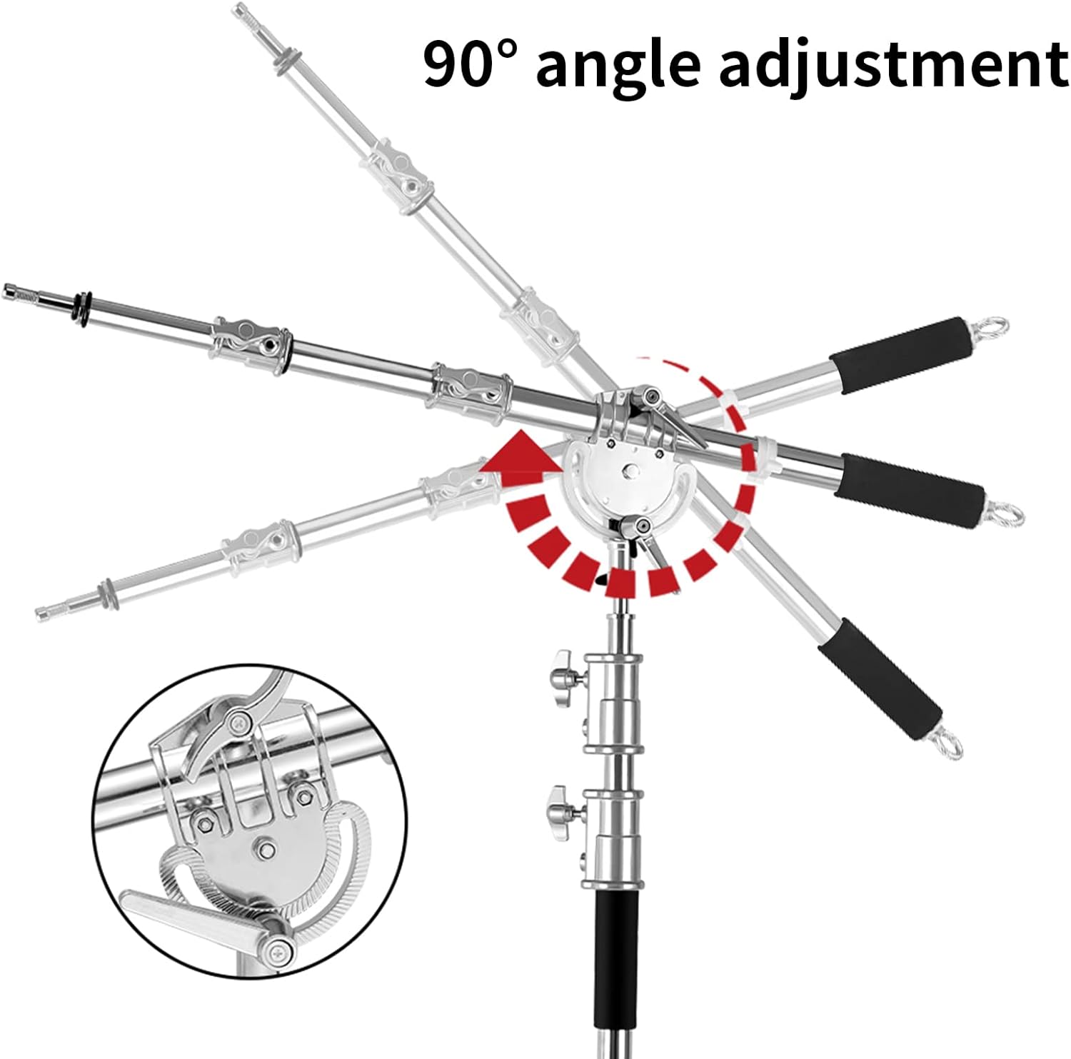 - 【ADJUSTABLE LENGTH】Length adjustable from 3.6/ 110cm to 8.2feet/ 250cm, it's much more flexible for you to fix the position of your light or softbox;It can also be rotated to 90 degree which allows you to capture the image under different angle.