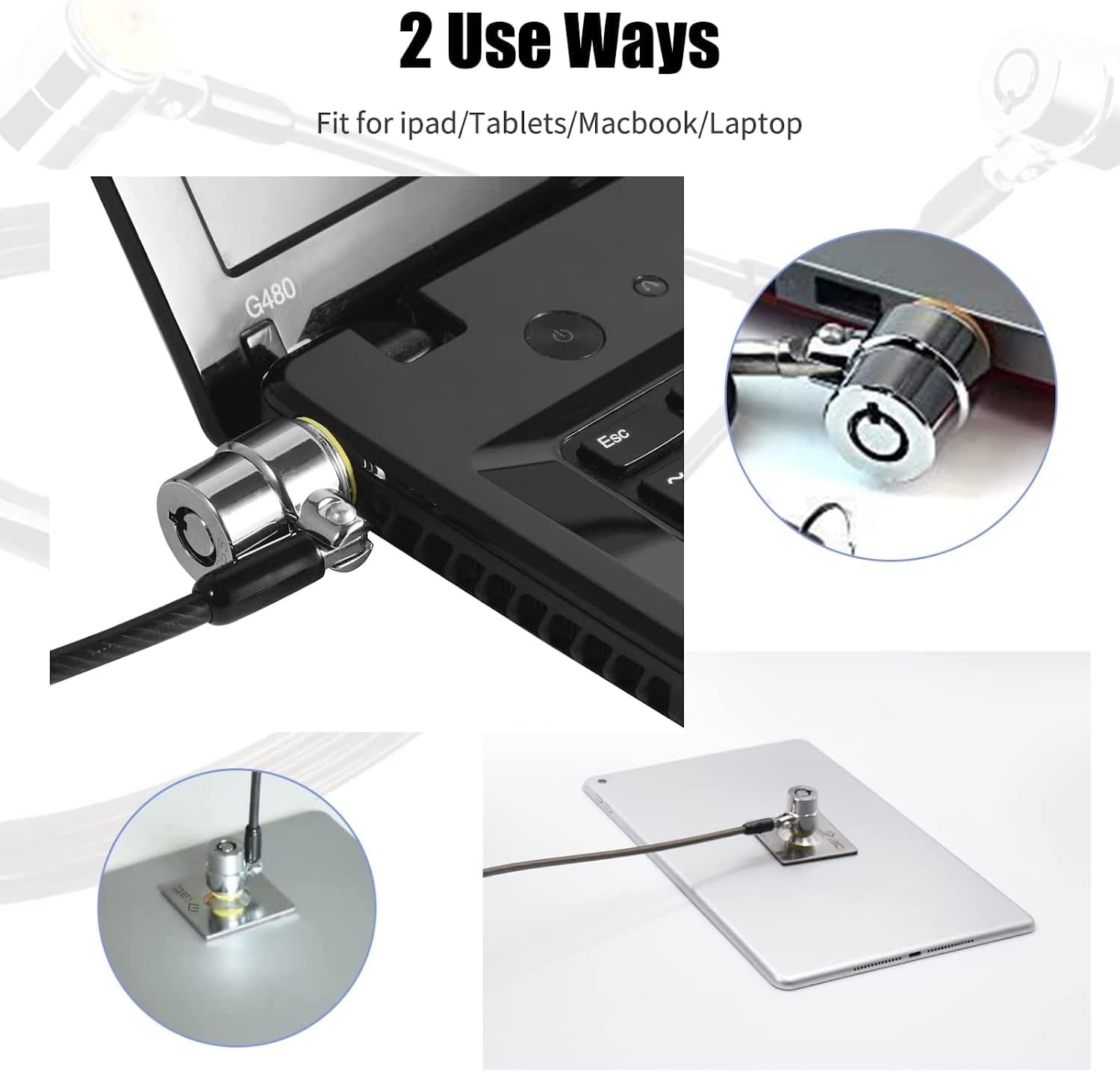 - ✔SUPER ANTI THEFT: The twin lock head is made of super strong stainless steel , can be rotated in 360 degree. The cable is made of cut-resistant twisted steel with PVC coat. Carbon steel cable resists cutting attempts and anchors to desk, table or any fixed structure.