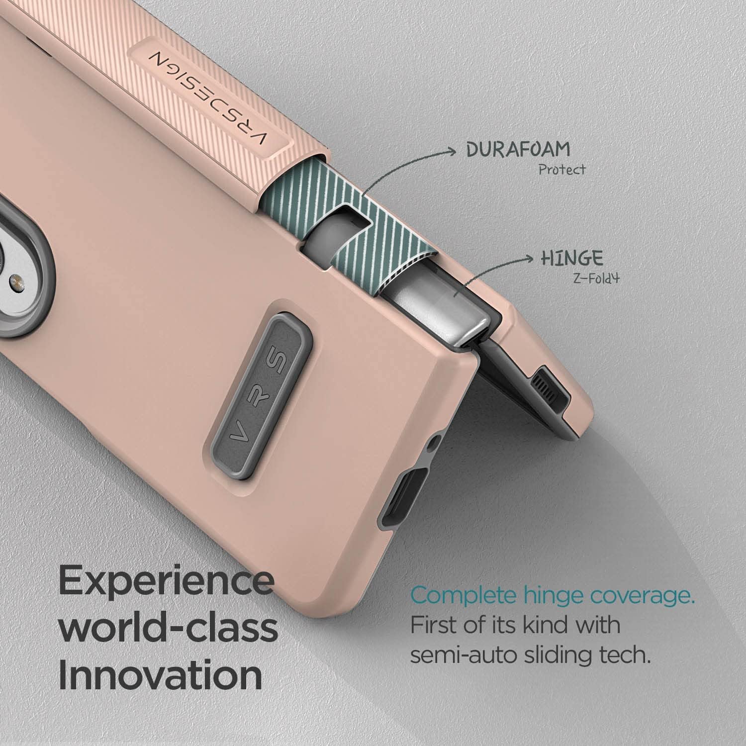 VRS DESIGN Terra Guard Modern for Galaxy Z Fold 4 5G (2022), Premium Modern Neat Style [Anti Scratch Hinge Protection] Case with Tempered Glass Screen Protector (Pink Sand)