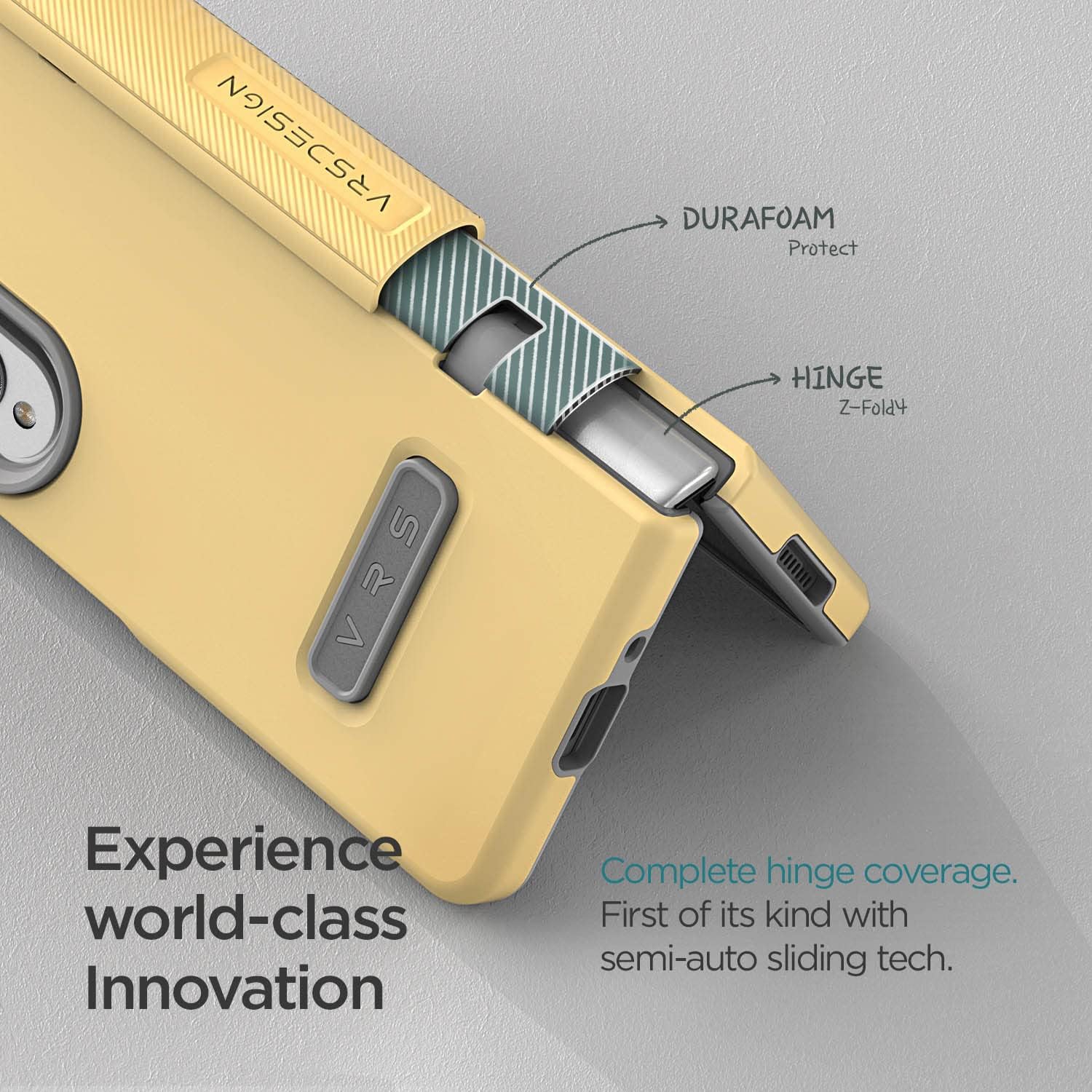 VRS DESIGN Terra Guard Modern for Galaxy Z Fold 4 5G (2022), Premium Modern Neat Style [Anti Scratch Hinge Protection] Case with Tempered Glass Screen Protector (Lemonade)